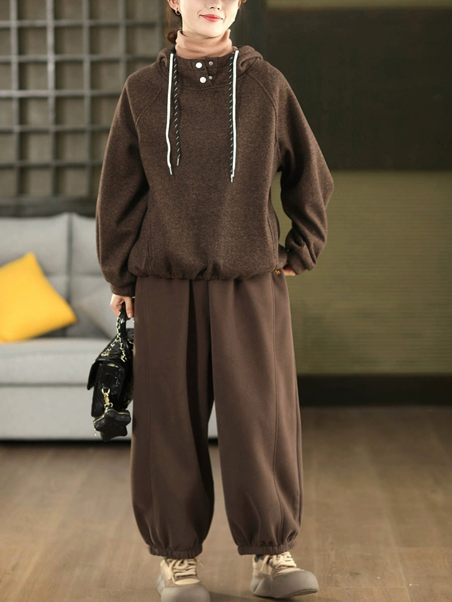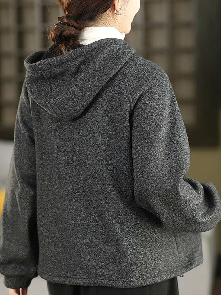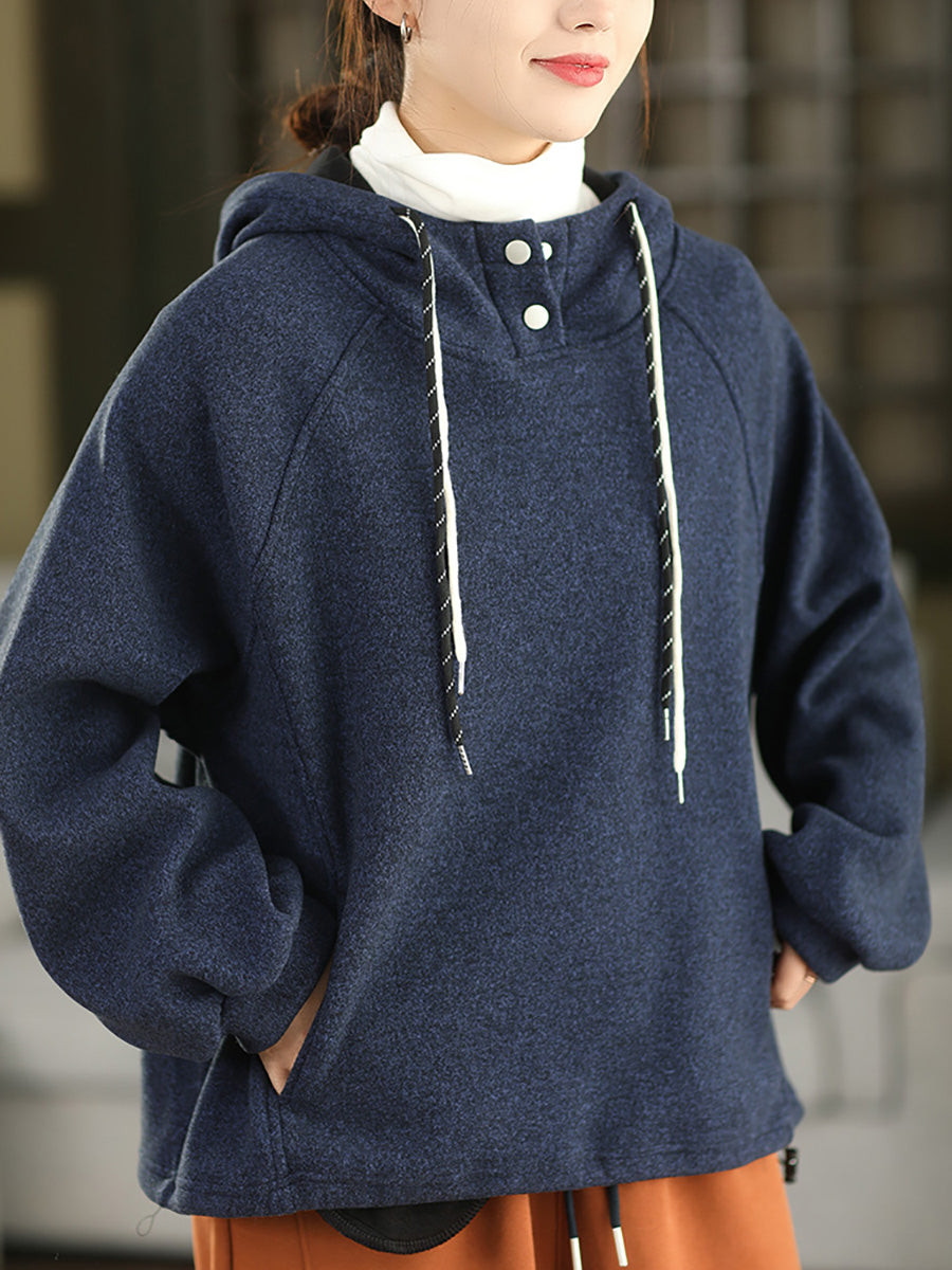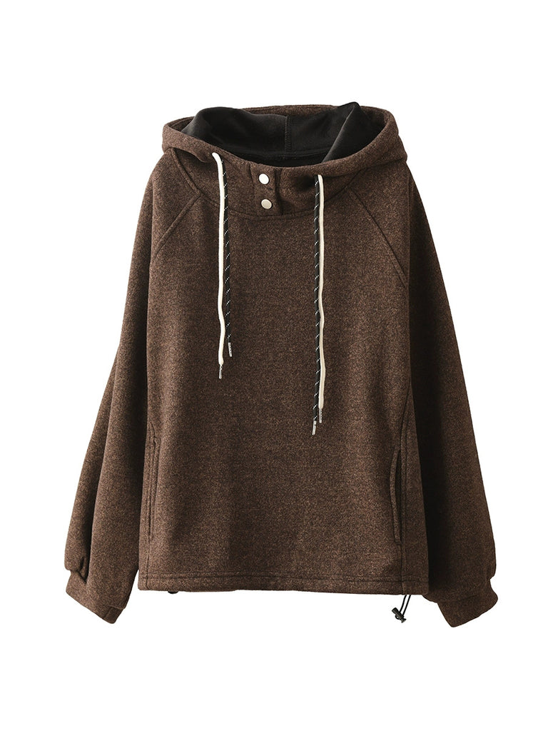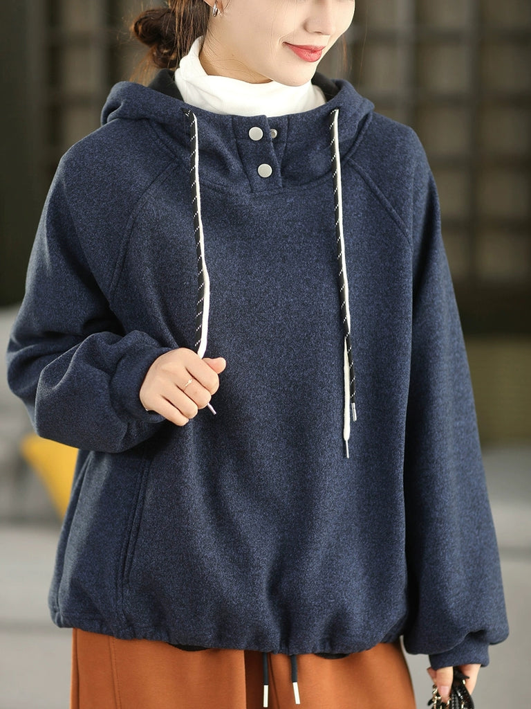 Damen Winter Casual Unifarbene Fleecegefütterte Kapuzenbluse mit Kapuze