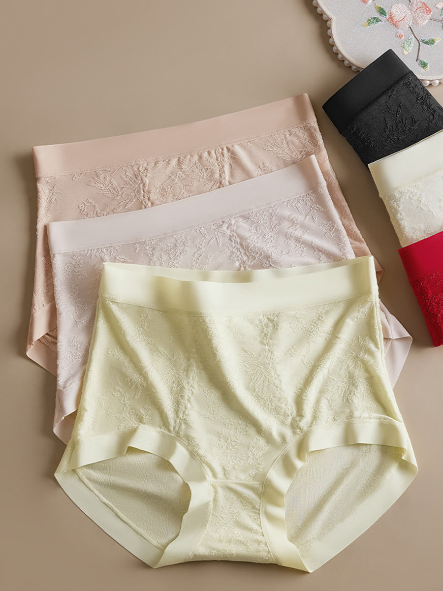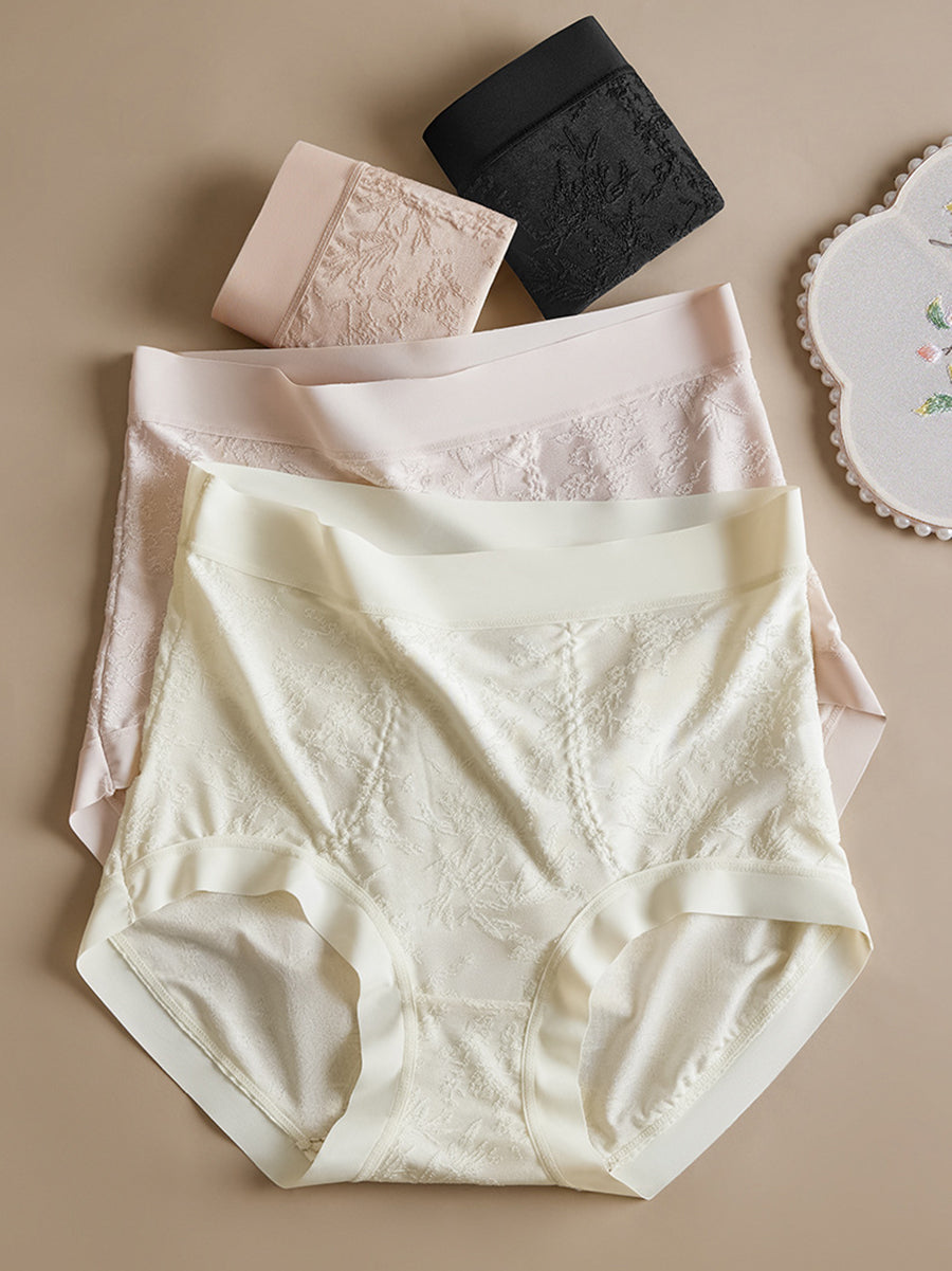4-teiliges Set Damen-Unterwäsche mit künstlerischem Jacquard-Muster und hohem Bund