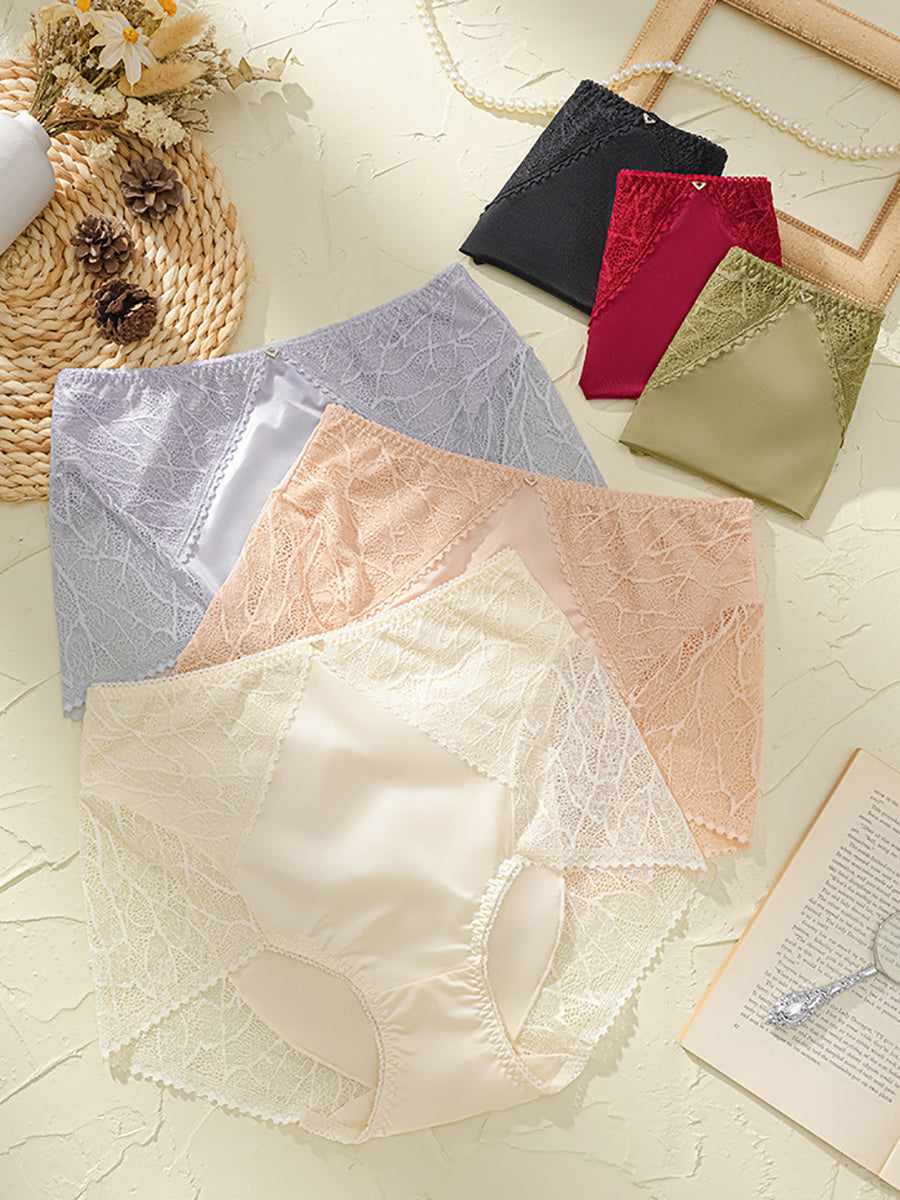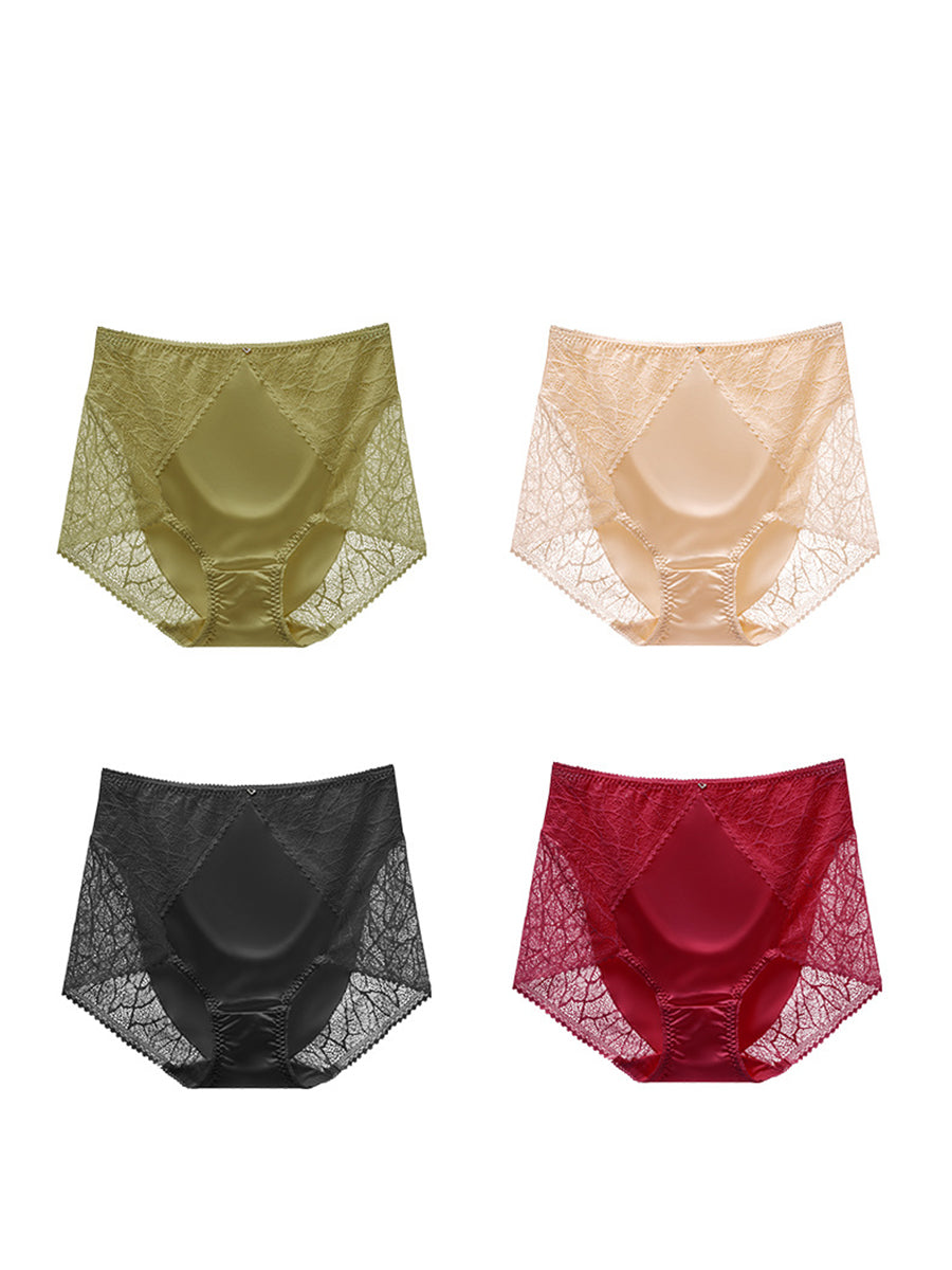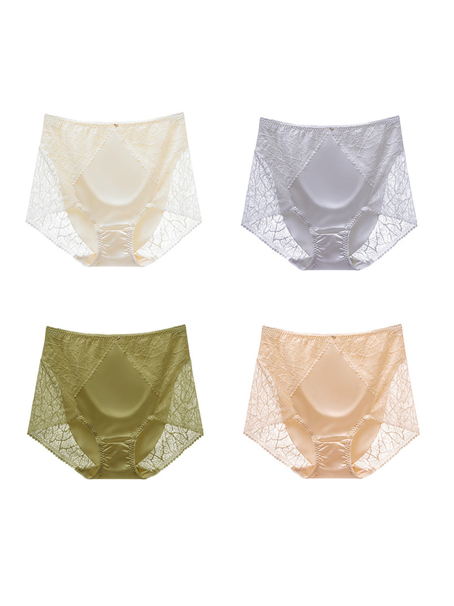 4-teiliges Set Damen-Unterwäsche mit kunstvoller Spitze und hohem Bund