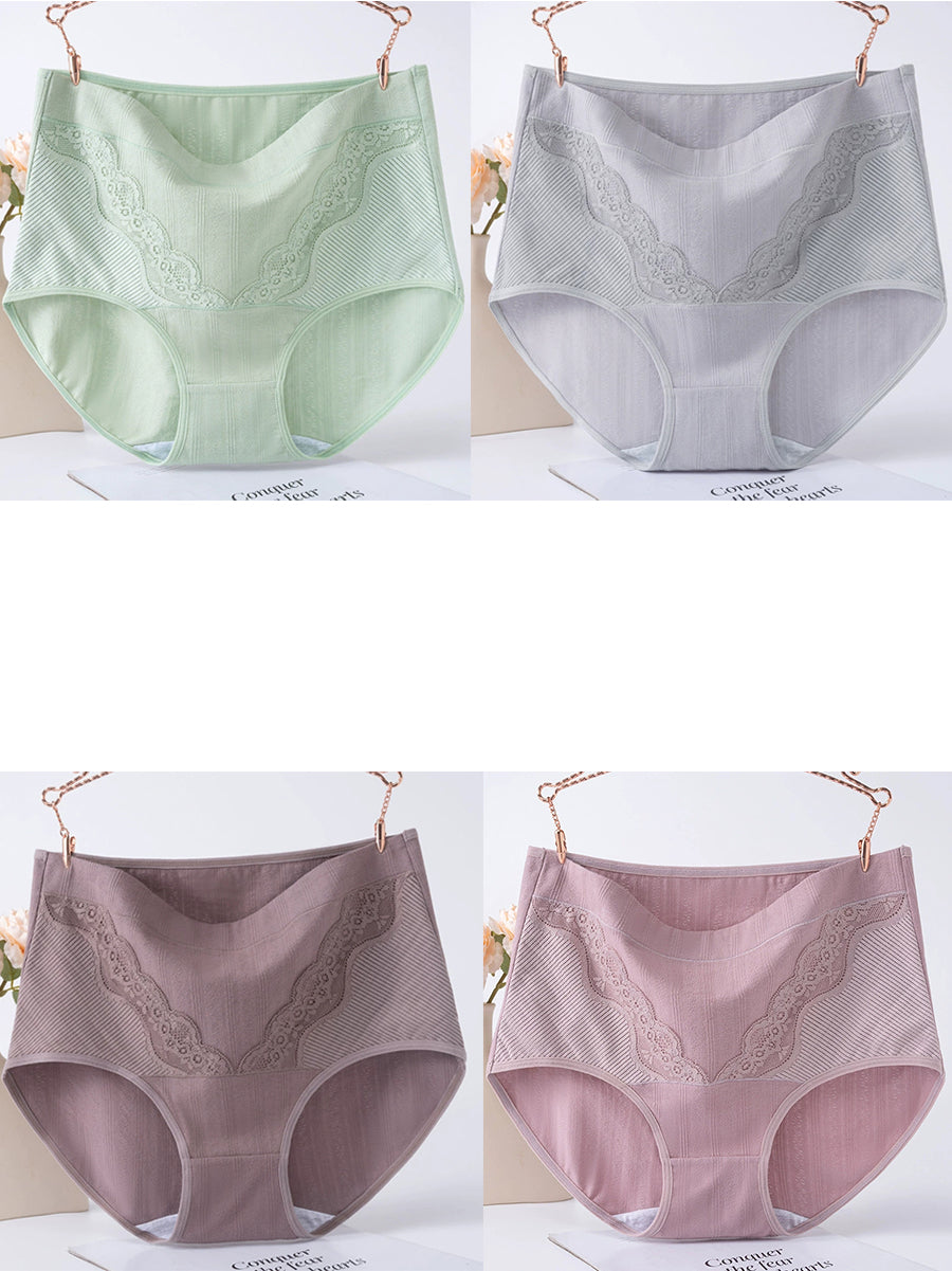 4-teiliges Set Damen-Unterwäsche mit kunstvoller Spitze und hohem Bund