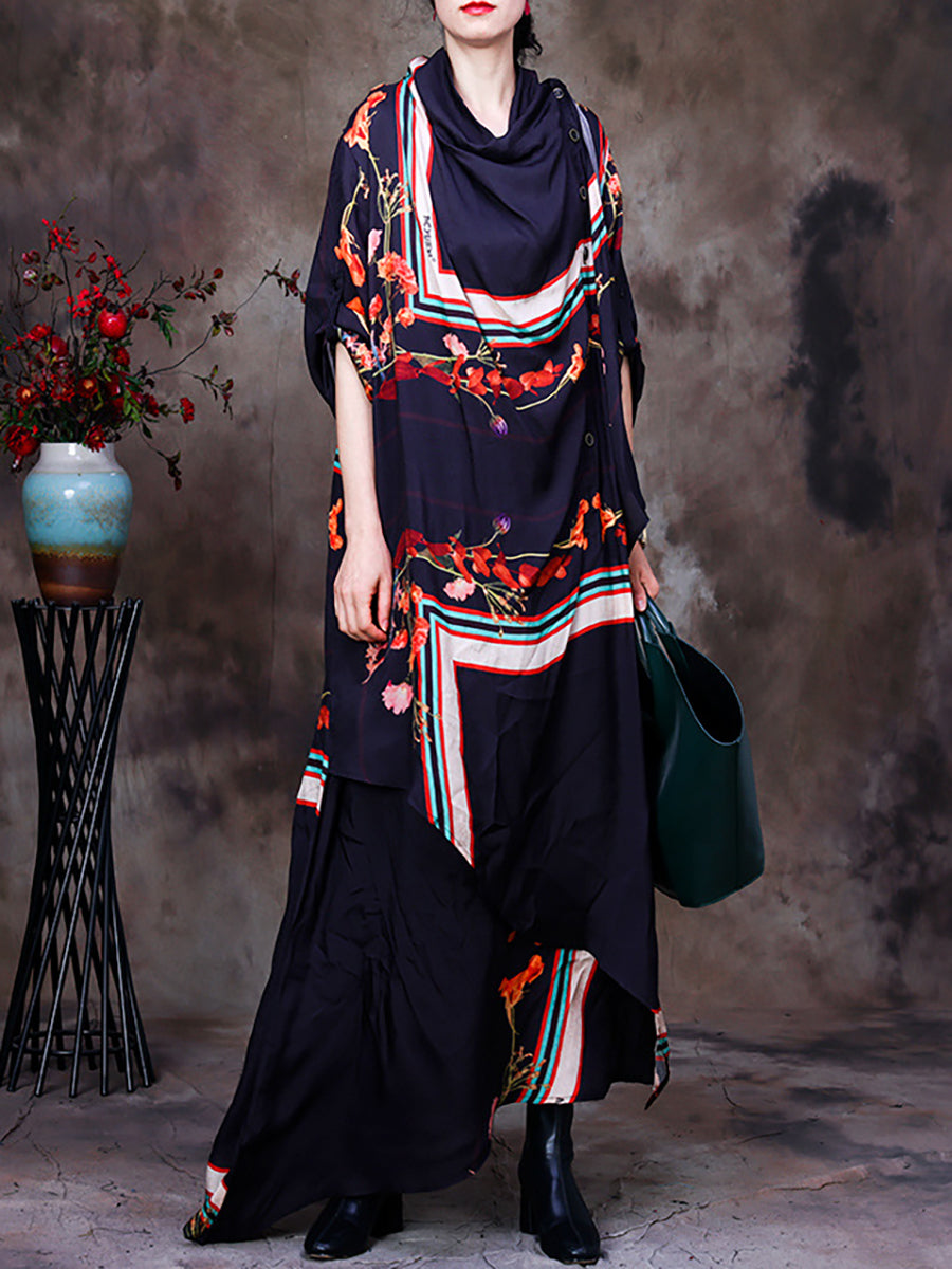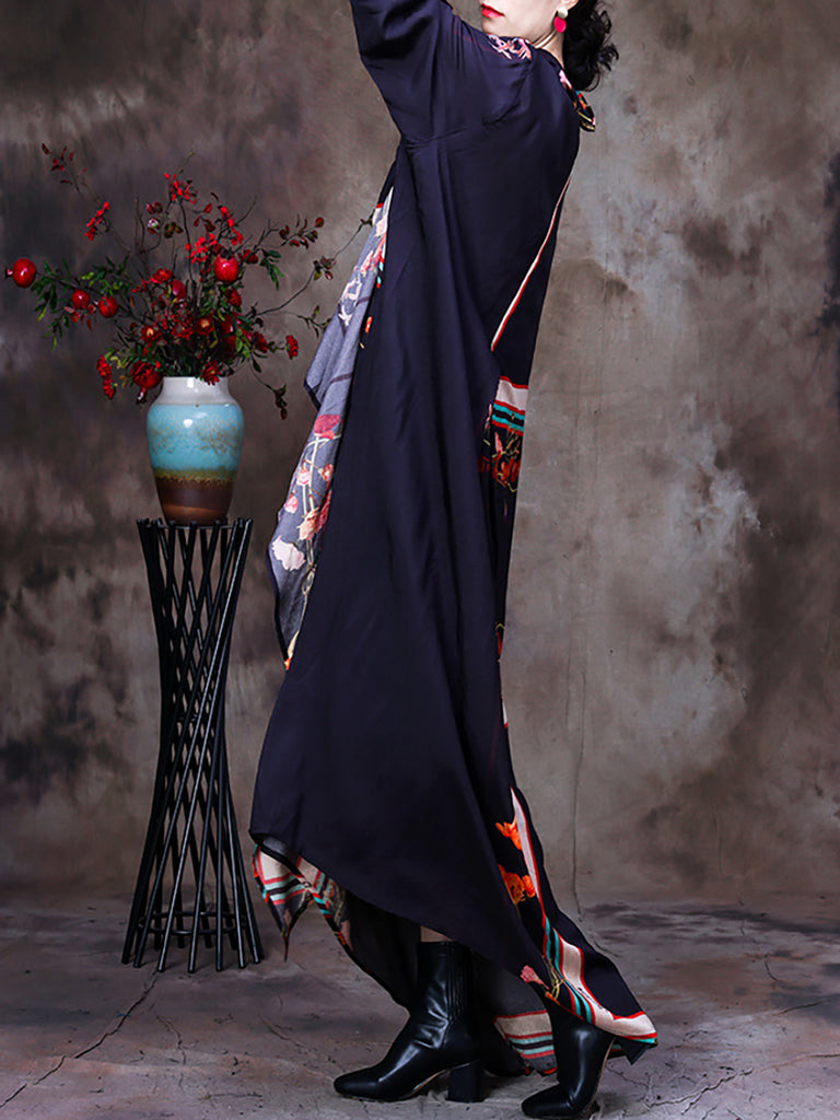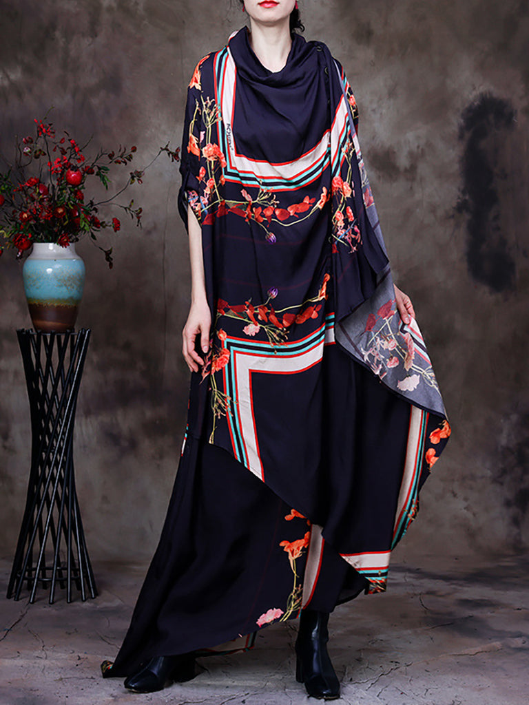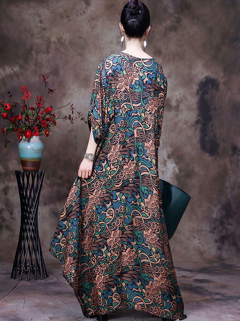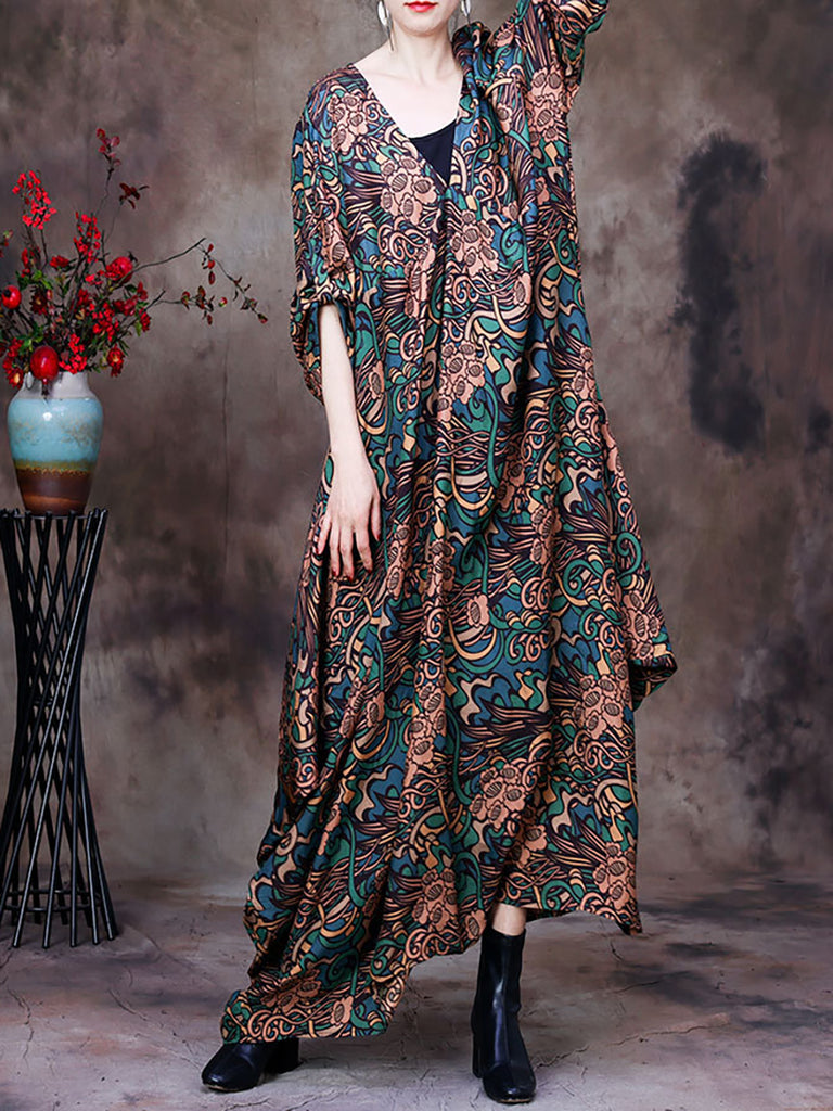 Unregelmäßiges lockeres Vintage-Maxikleid mit Blumenmuster