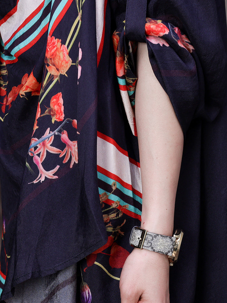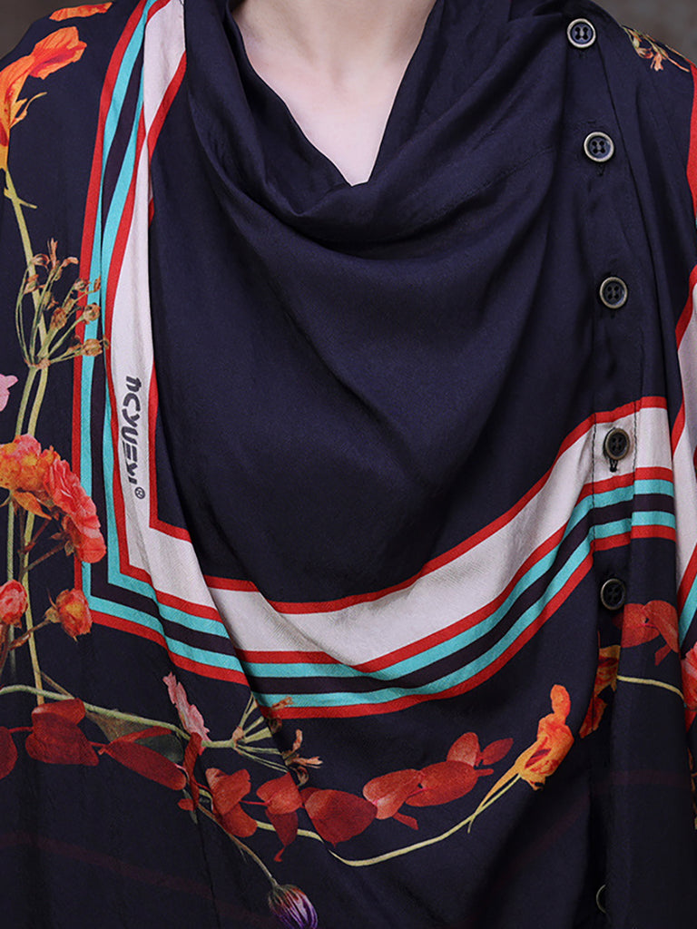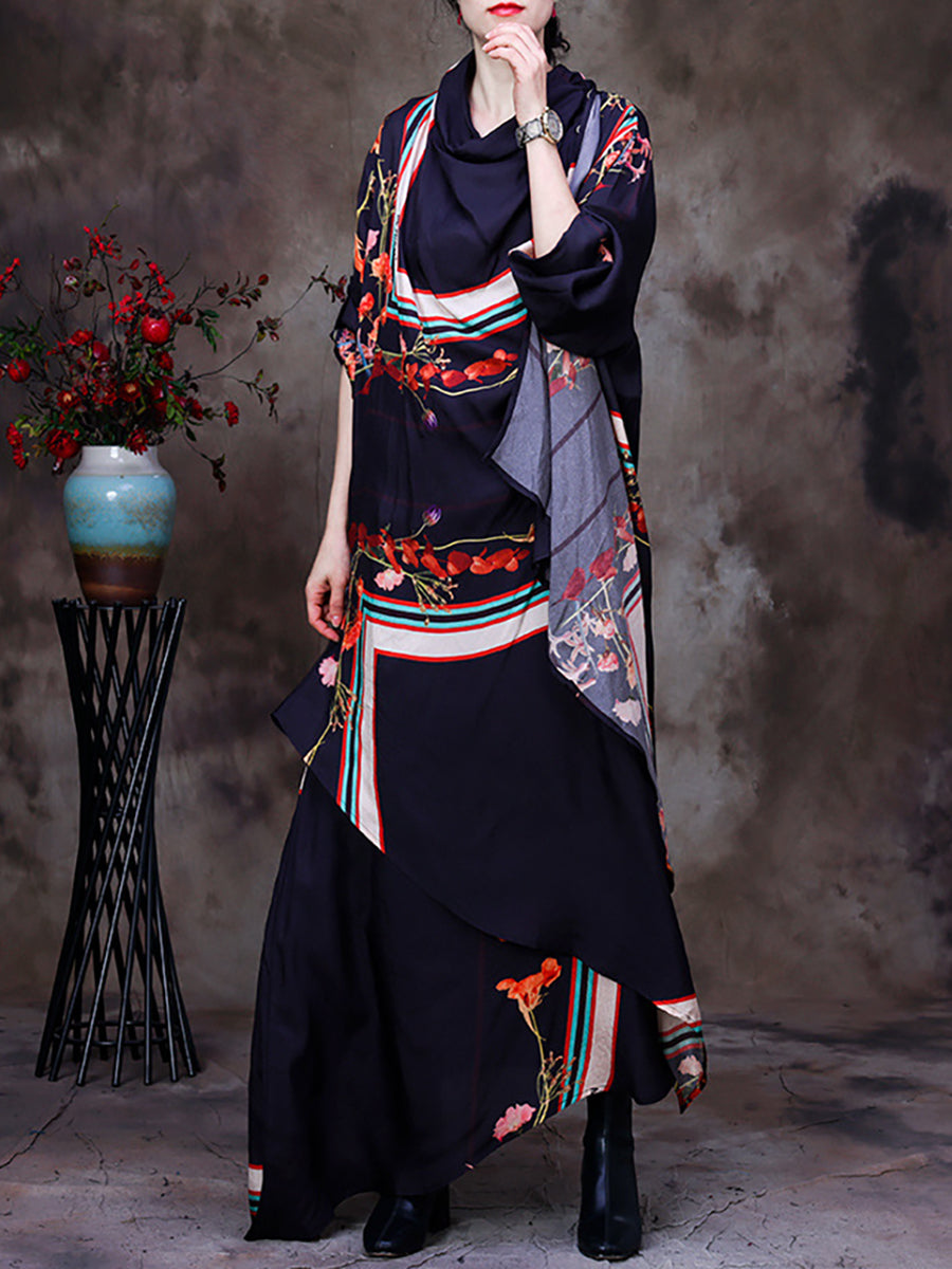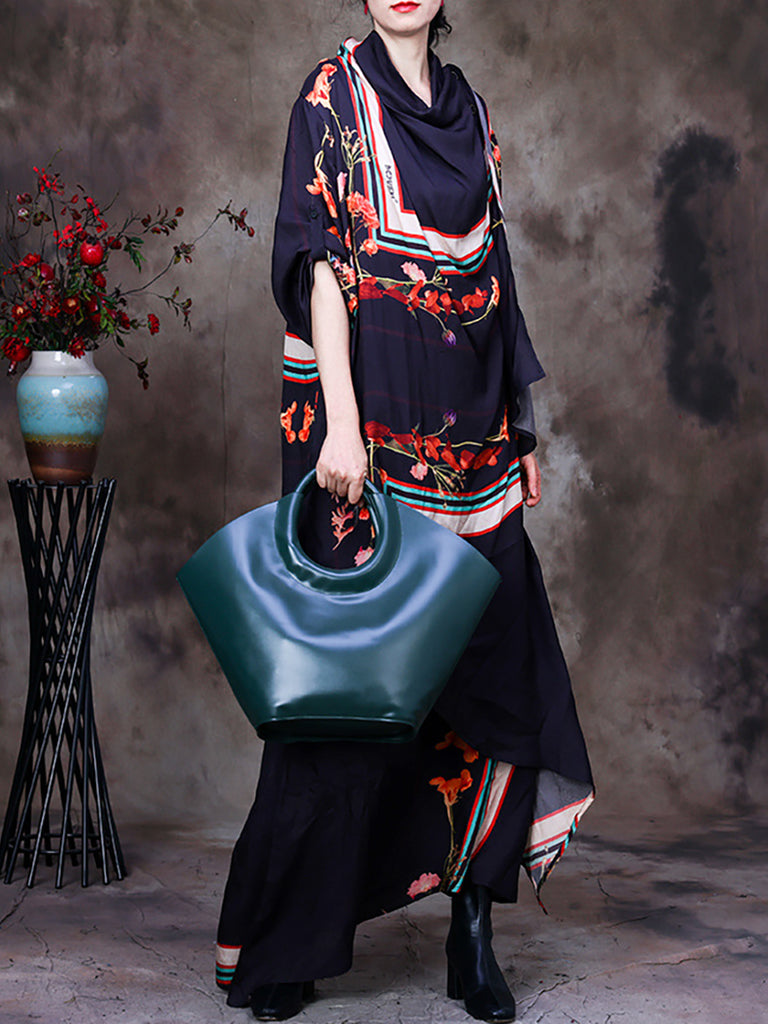 Unregelmäßiges lockeres Vintage-Maxikleid mit Blumenmuster
