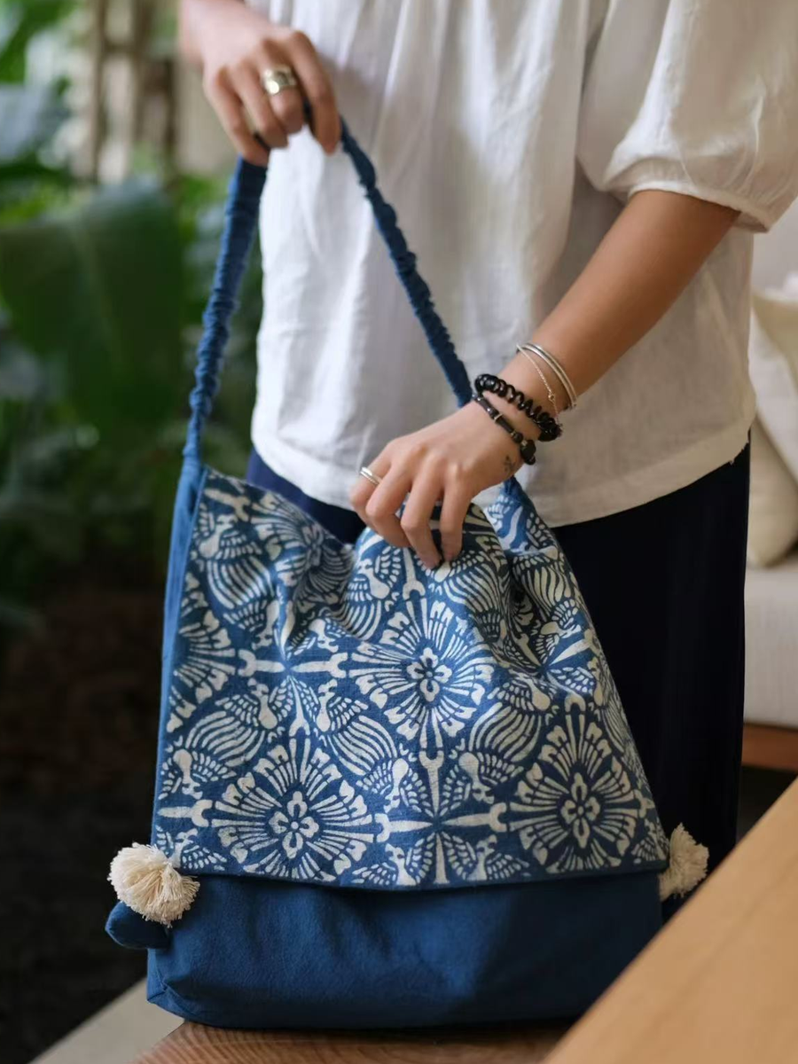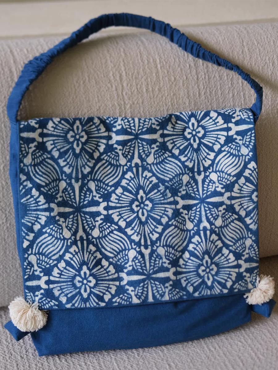 Vintage-Schultertasche mit floralem Muster und Überschlag