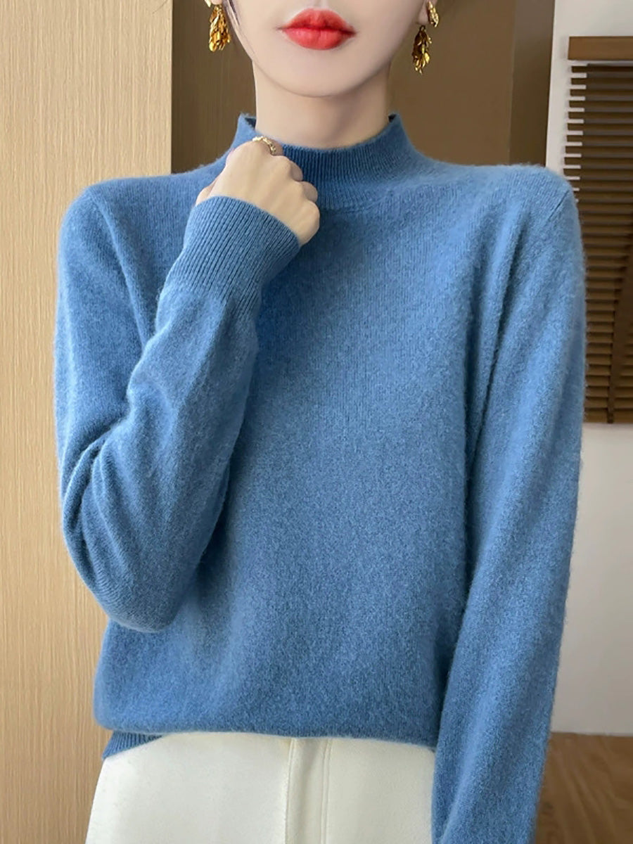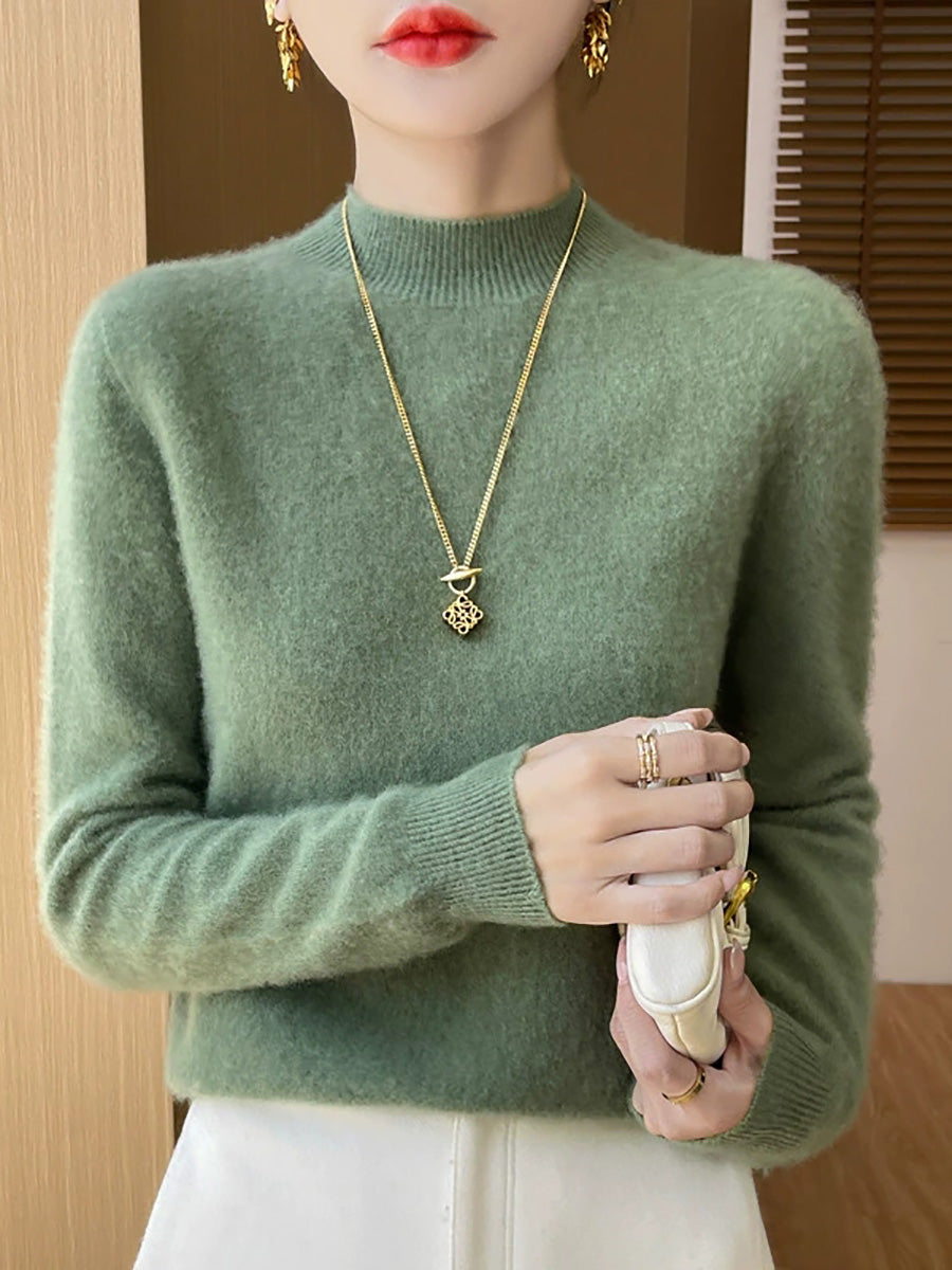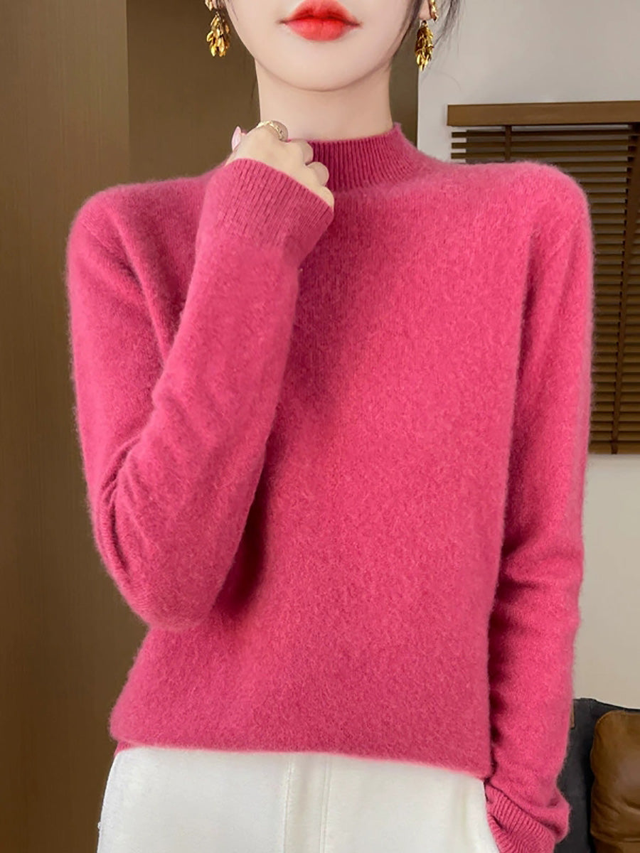 Damen-Frühlingspullover von Artsy in Unifarben mit halbem Rollkragen