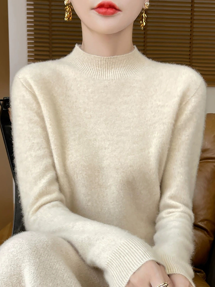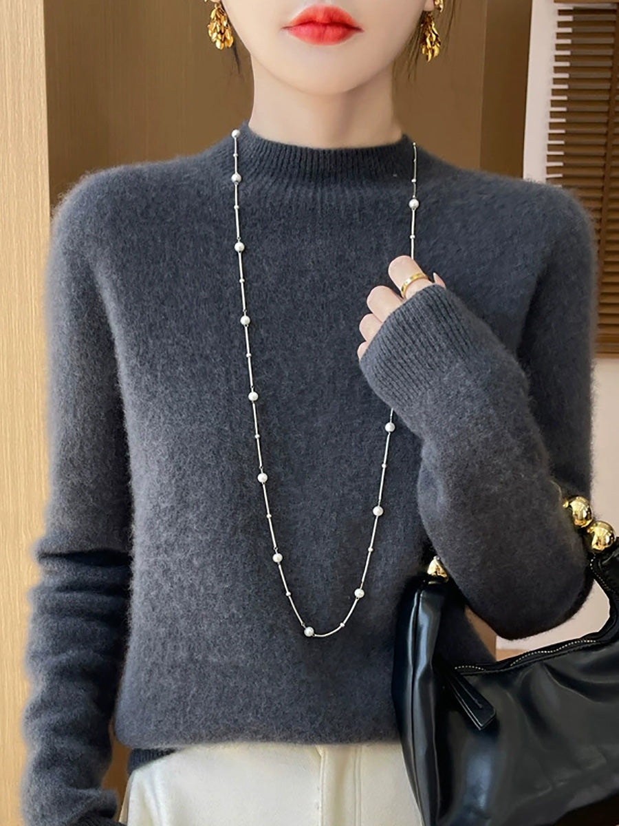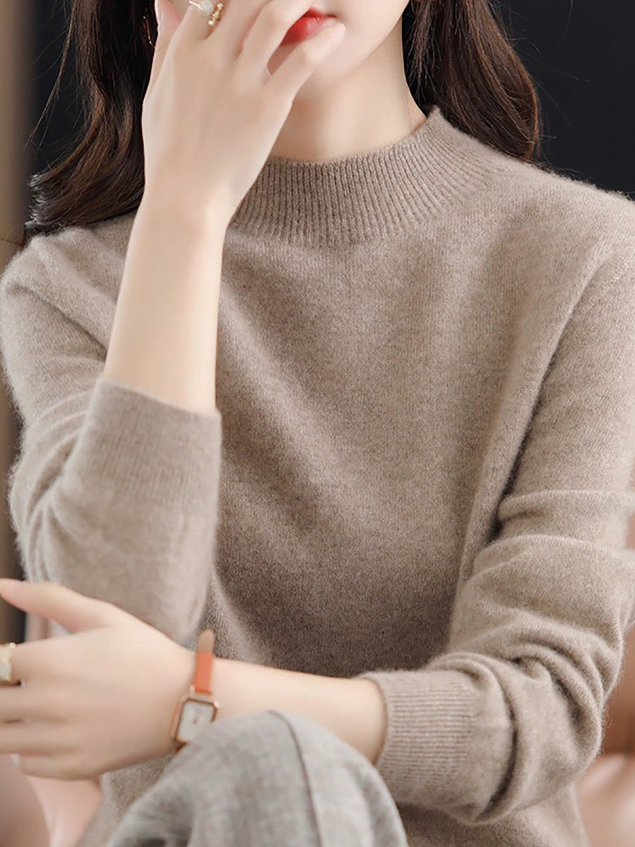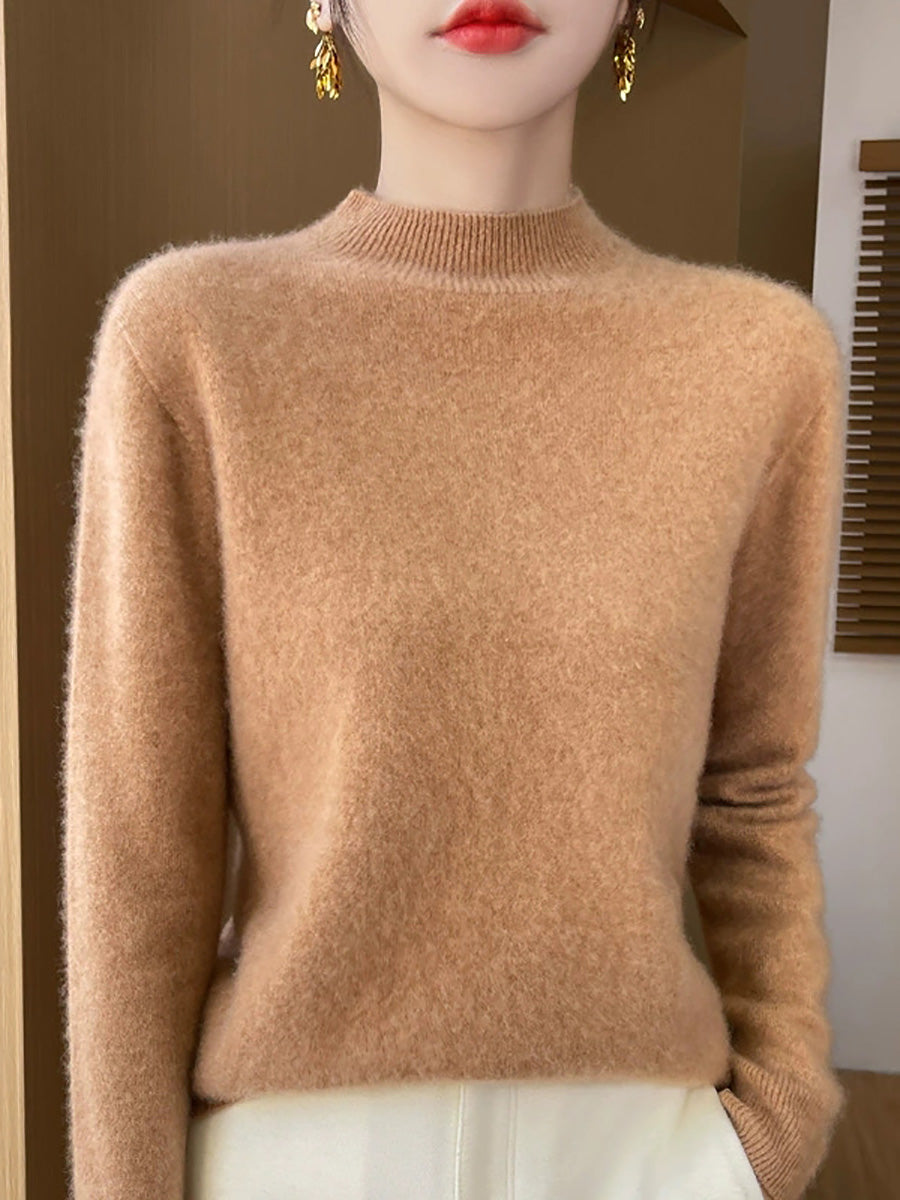 Damen-Frühlingspullover von Artsy in Unifarben mit halbem Rollkragen