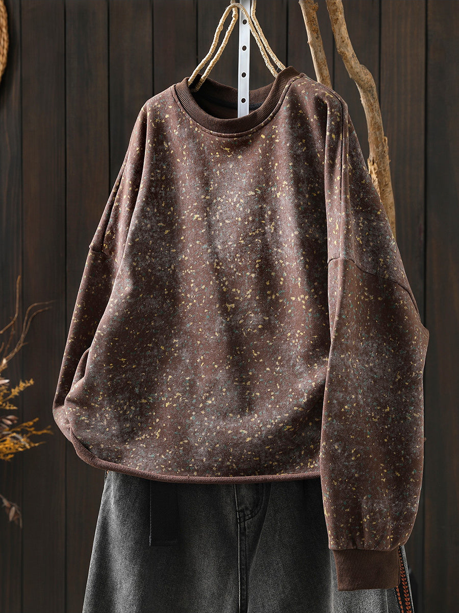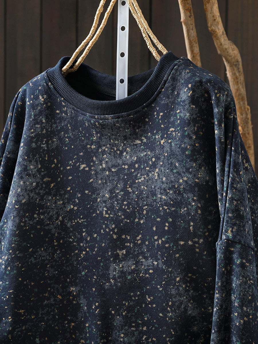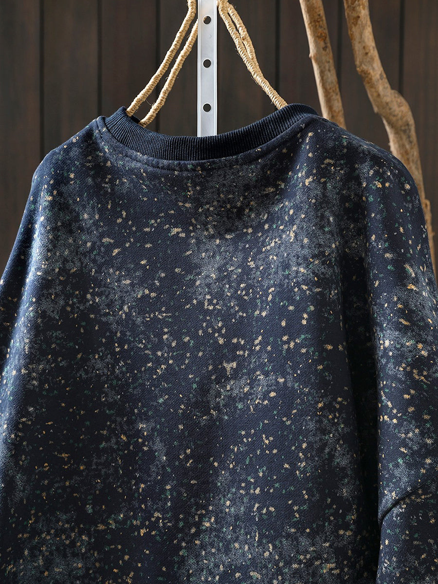 Künstlerische Frühlingsbluse mit Batikmuster, 100 % Baumwolle, Rundhalsausschnitt für Damen