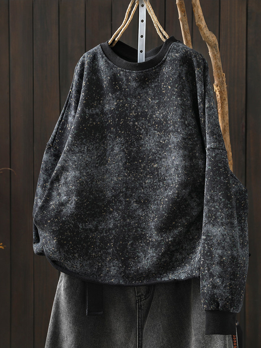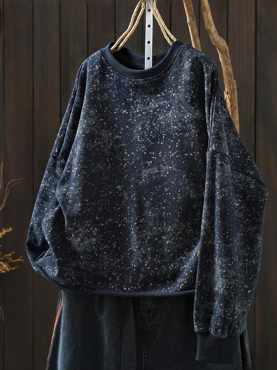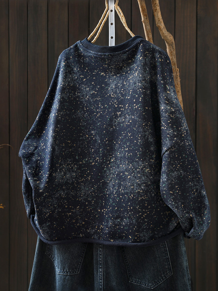 Künstlerische Frühlingsbluse mit Batikmuster, 100 % Baumwolle, Rundhalsausschnitt für Damen