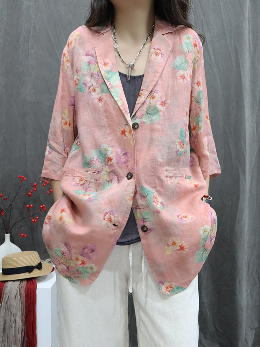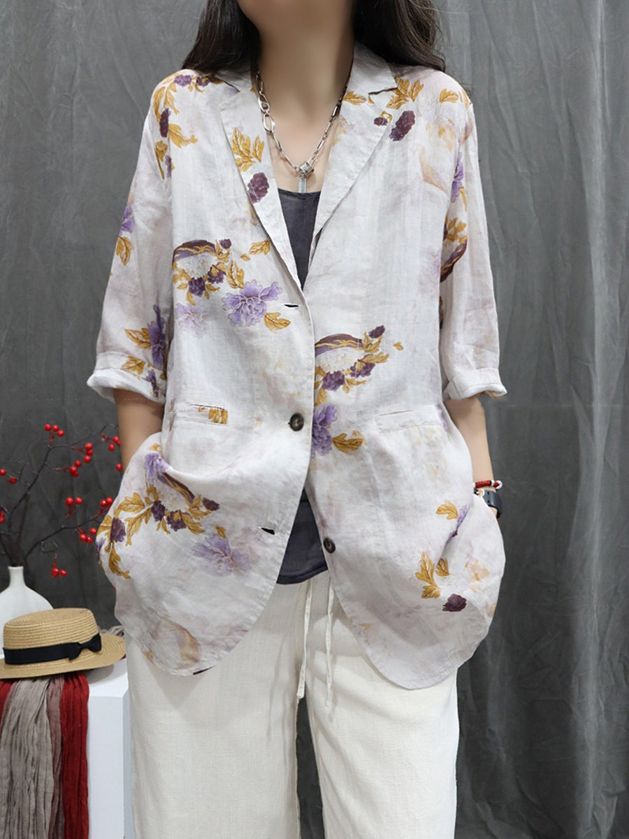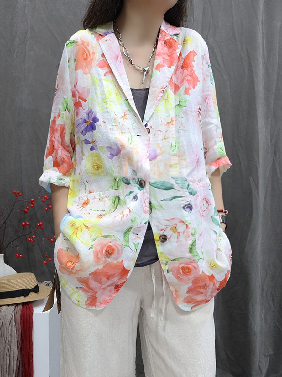 Damen-Sommermantel mit Blumenmuster aus 100 % Ramie