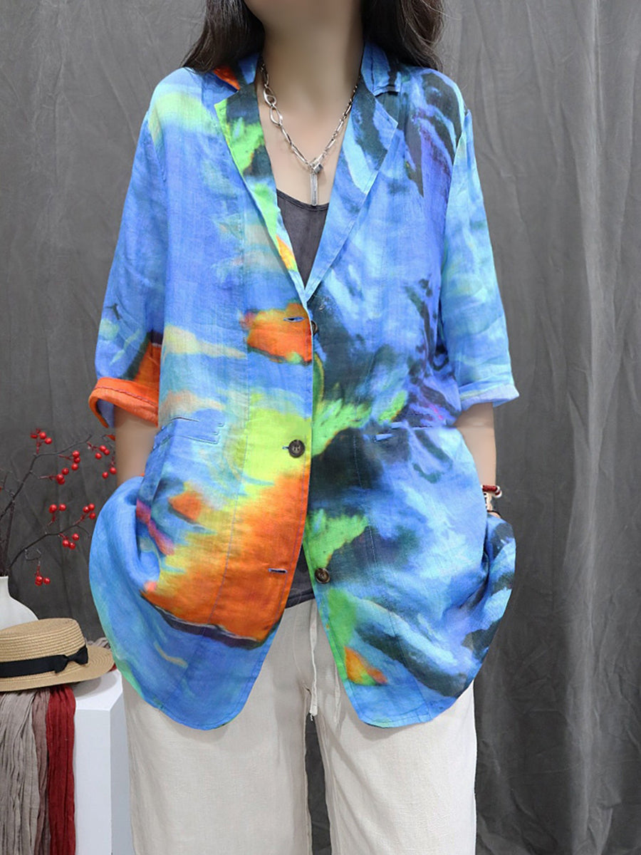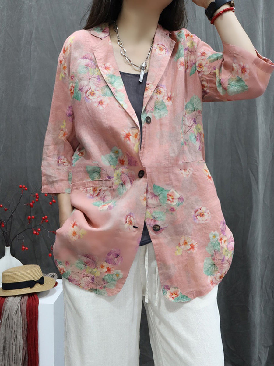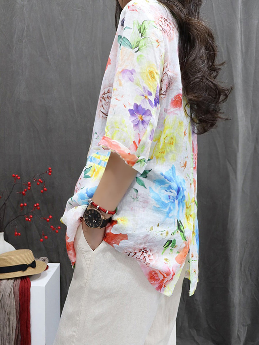 Damen-Sommermantel mit Blumenmuster aus 100 % Ramie