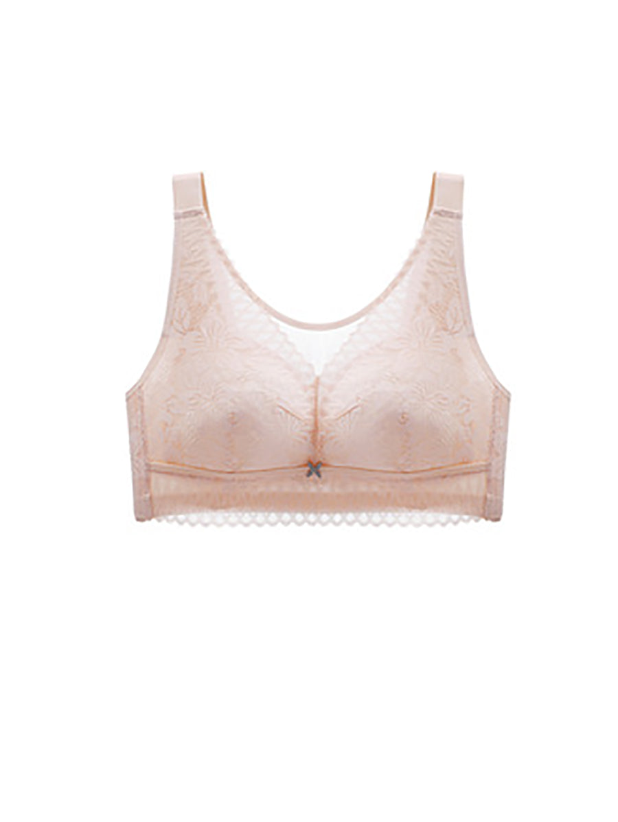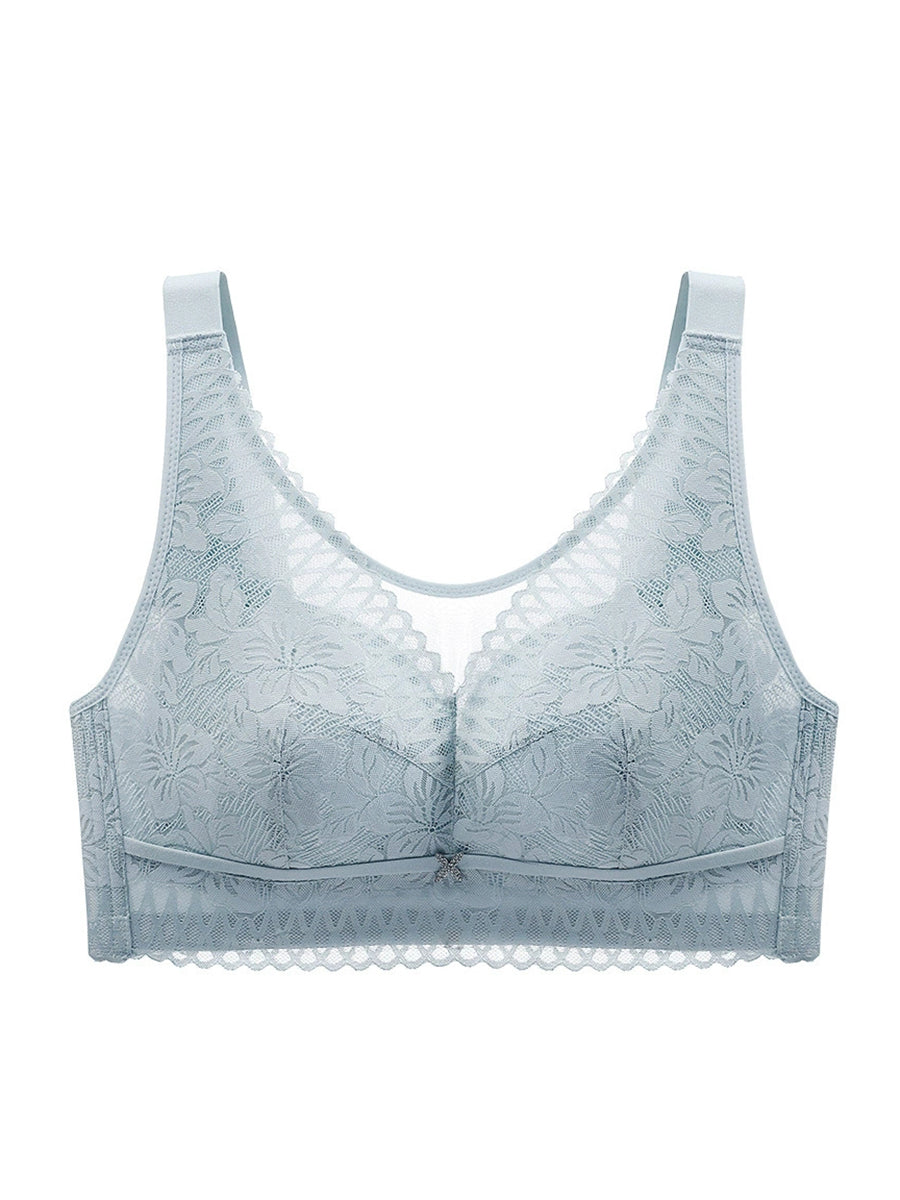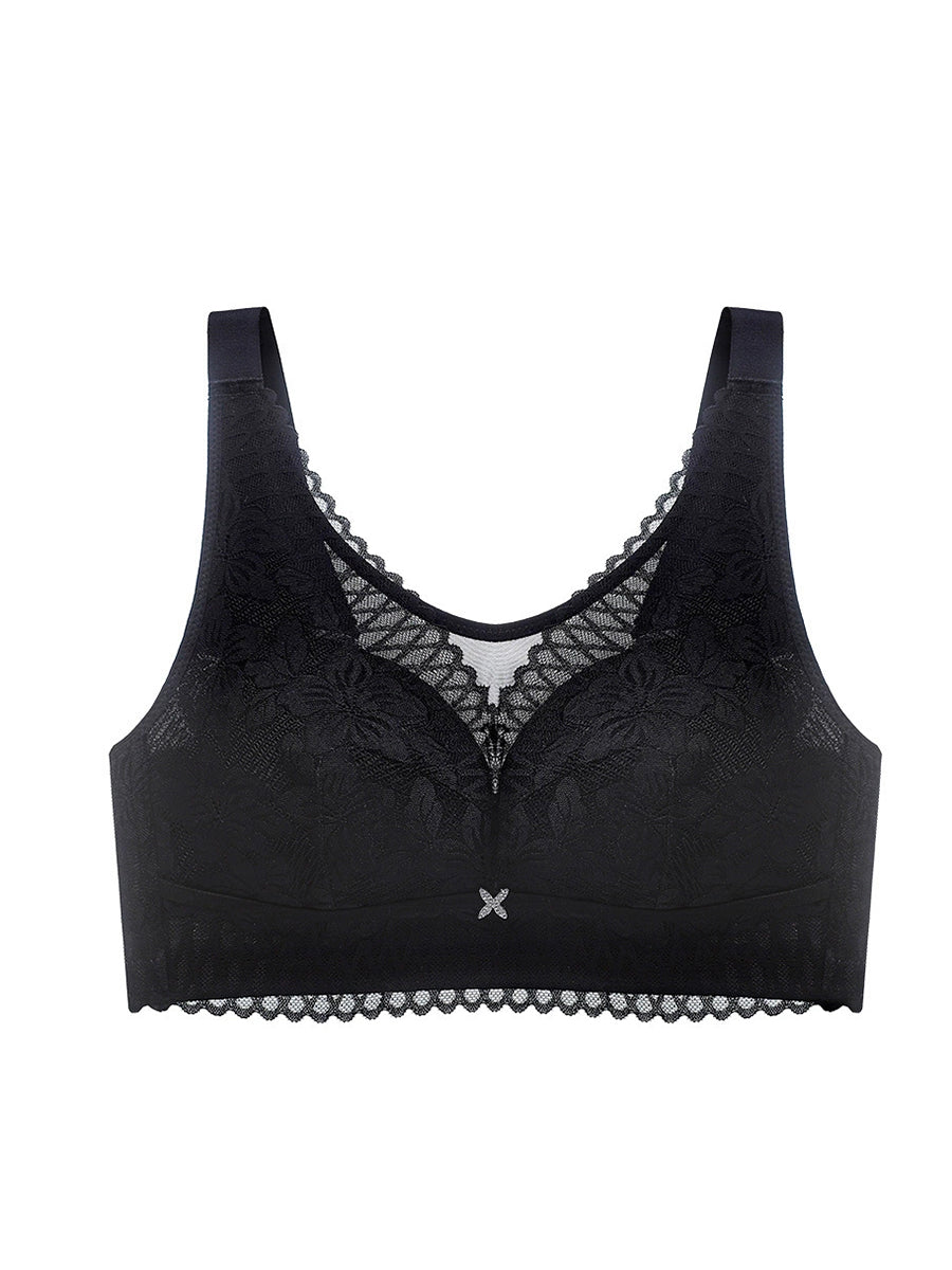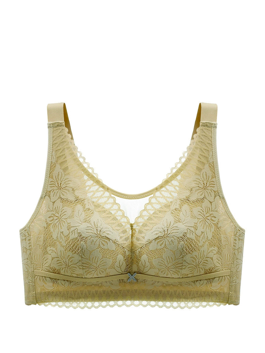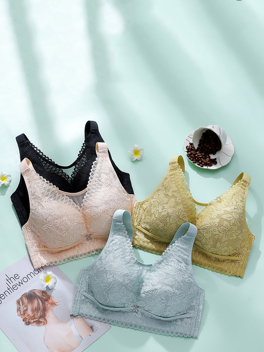 Lässiger, künstlerischer kabelloser BH mit Blumenmuster und Spitze für Damen