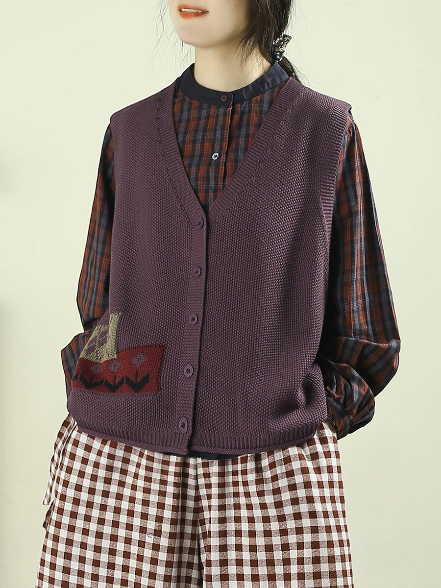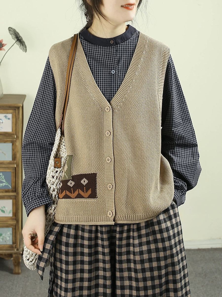 Damen Frühlingsweste mit V-Ausschnitt aus 100% Baumwolle, strickig und klassisch-elegant