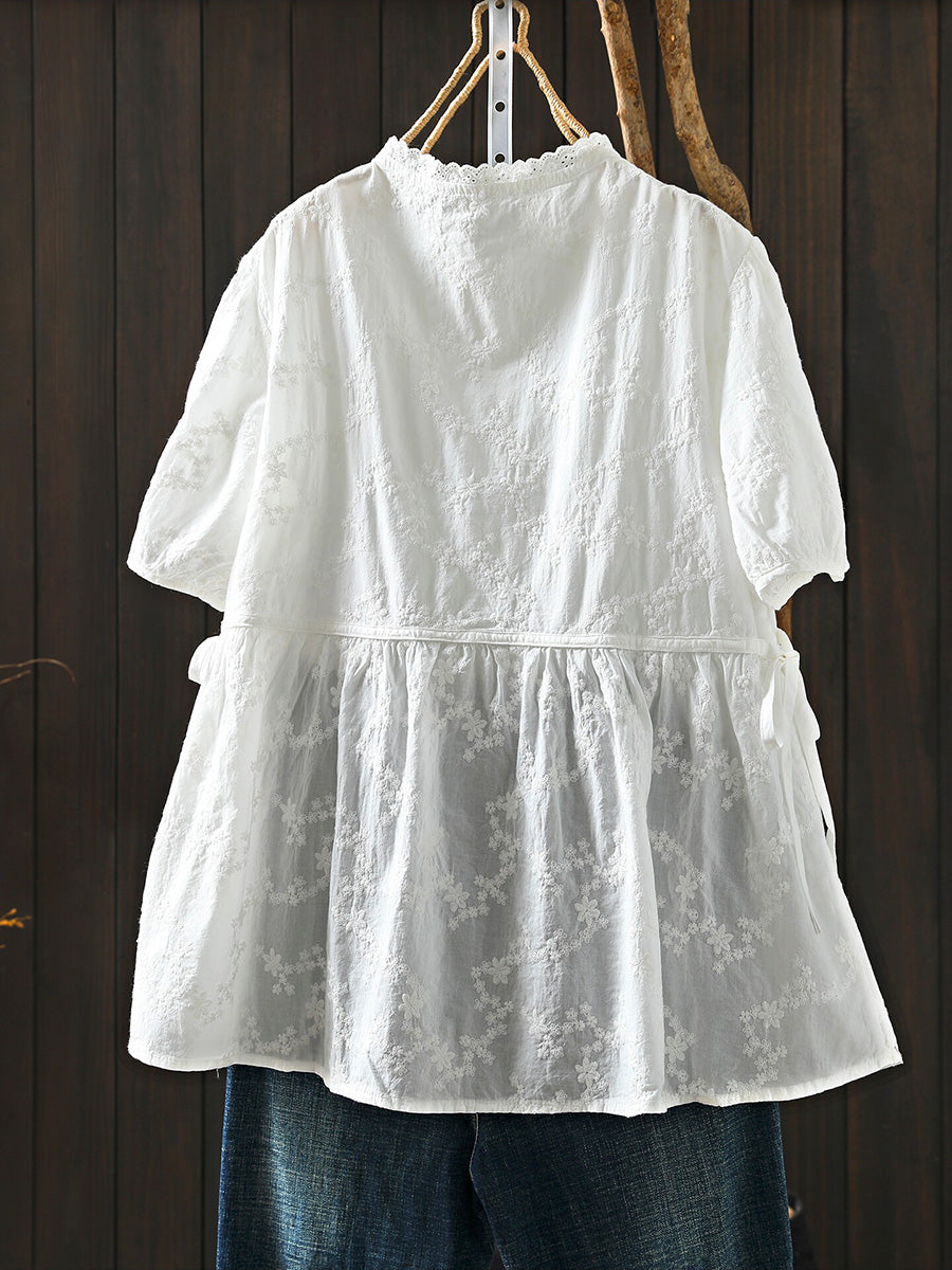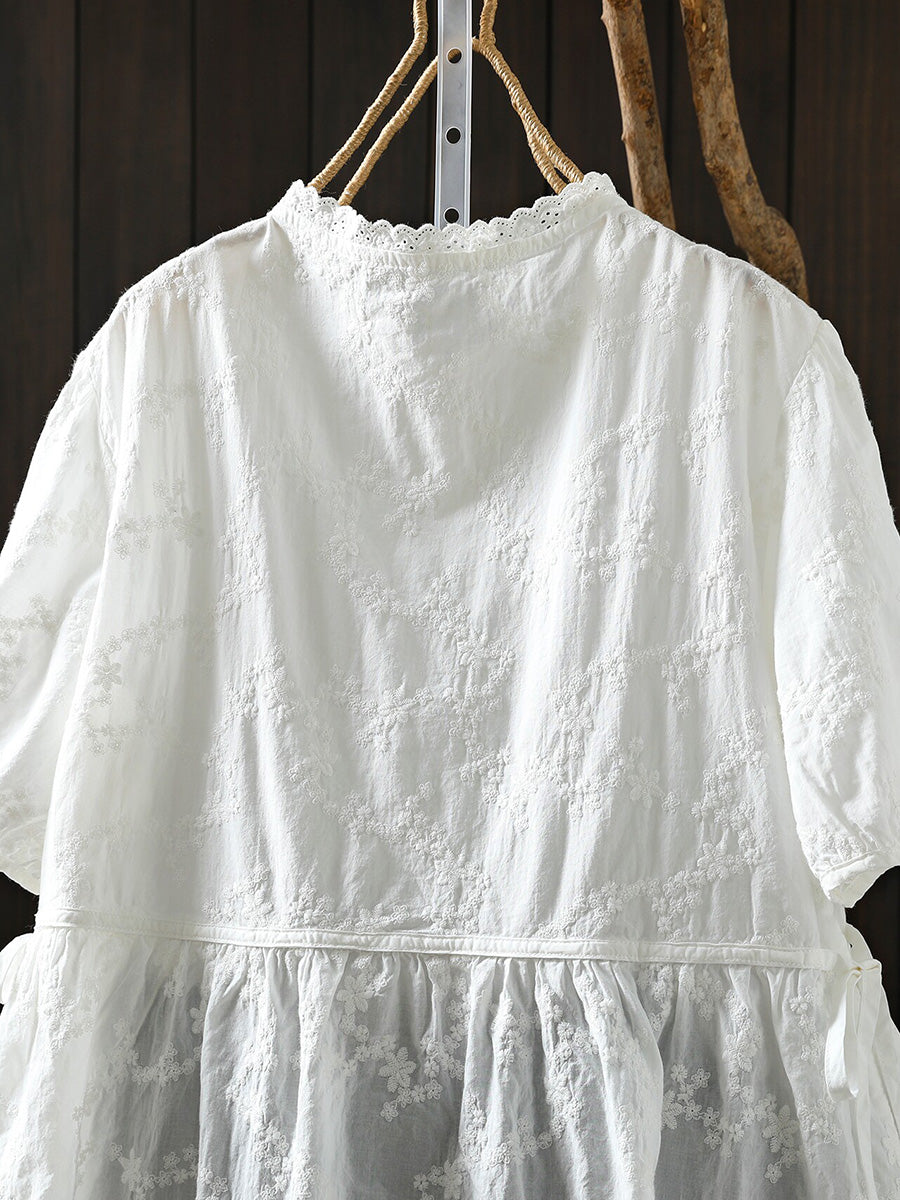 Sommerbluse für Damen mit kunstvoller Stickerei, Rundhalsausschnitt, 100 % Baumwolle