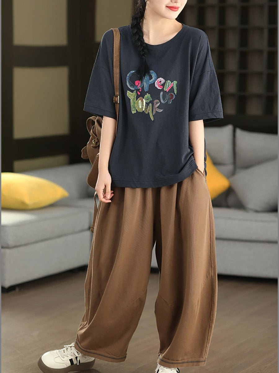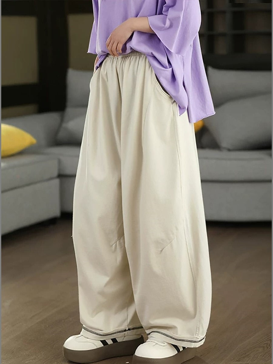 Damen Sommer Freizeit Baumwollhose mit weitem Bein