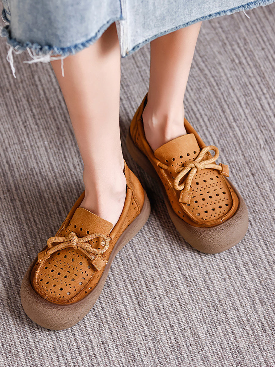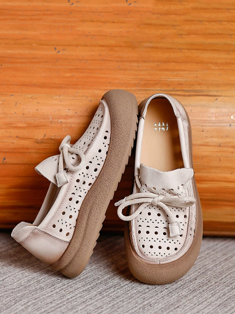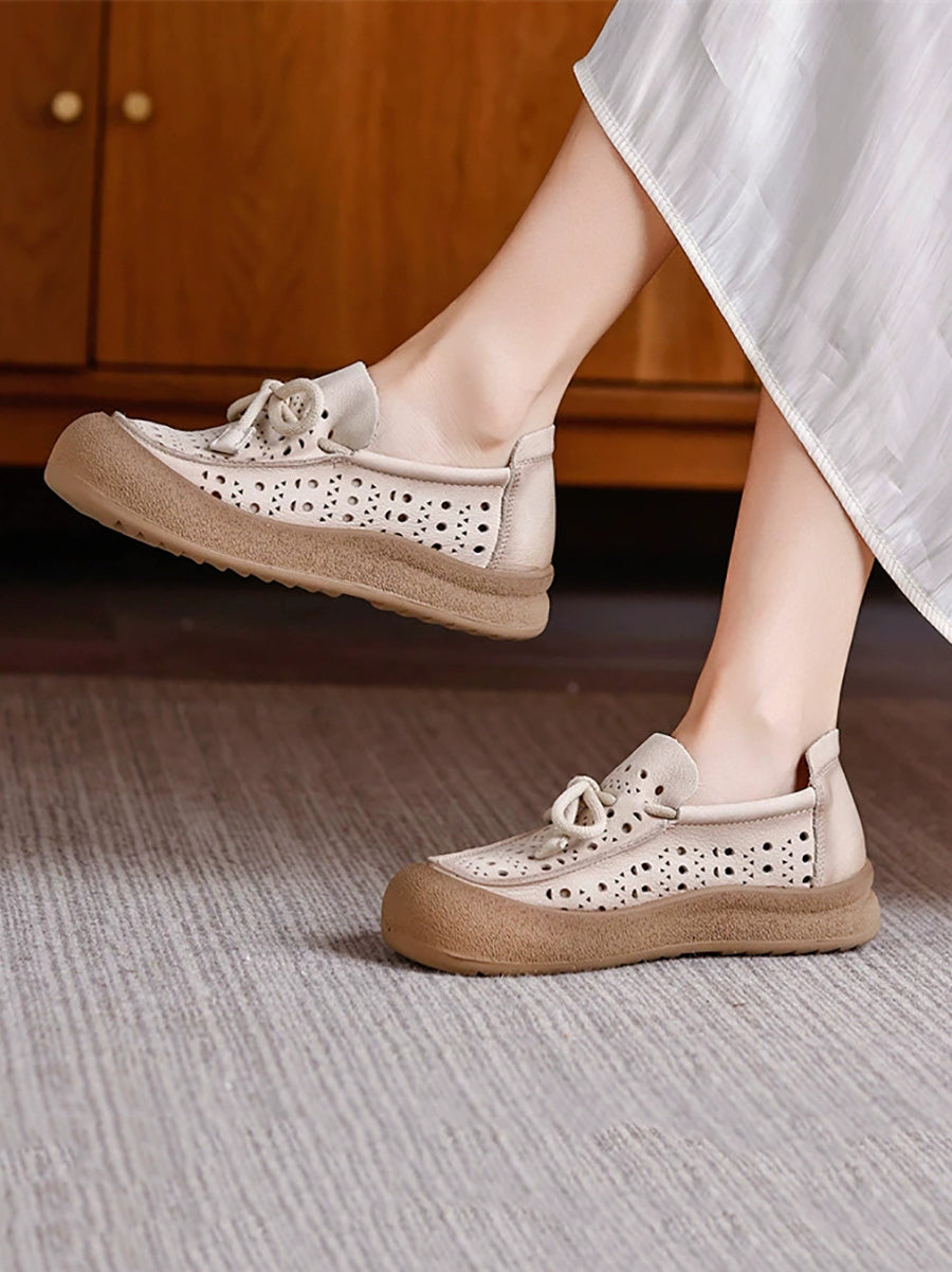 Damen Sommer Echtleder Schuhe mit Lochmuster