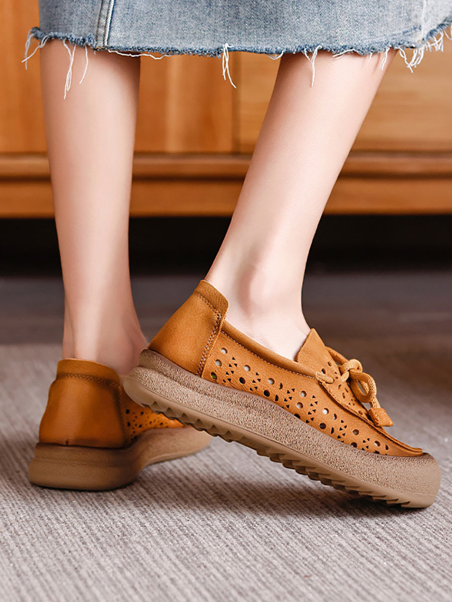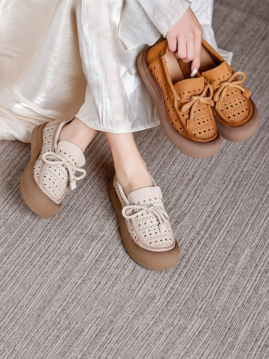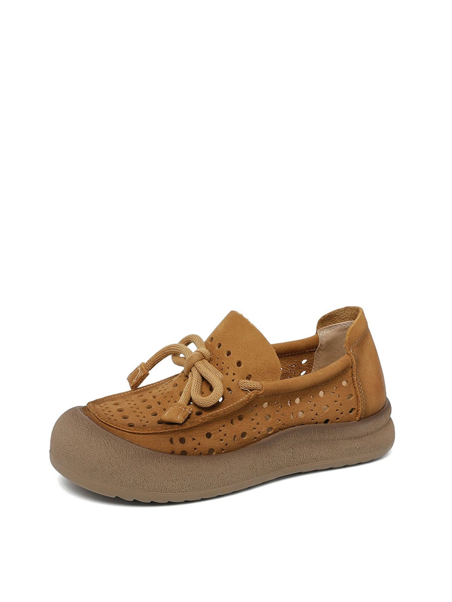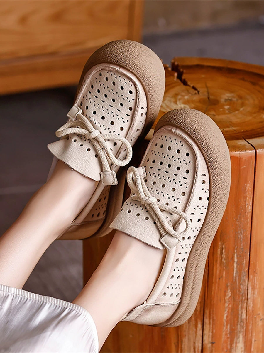 Damen Sommer Echtleder Schuhe mit Lochmuster