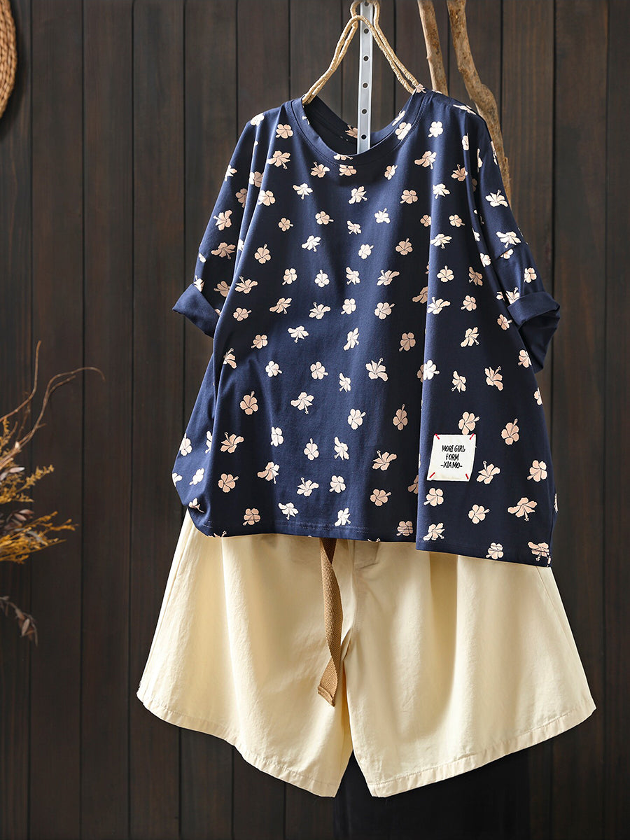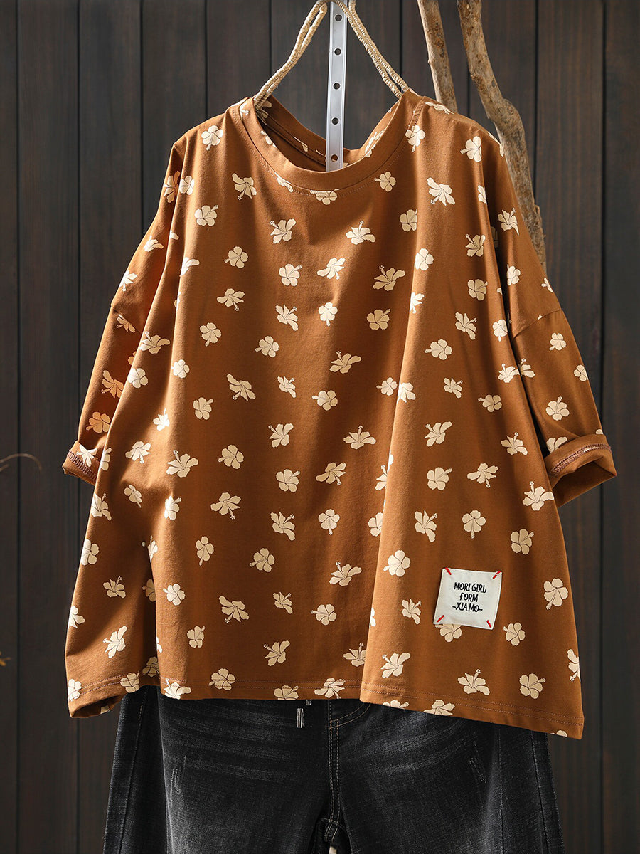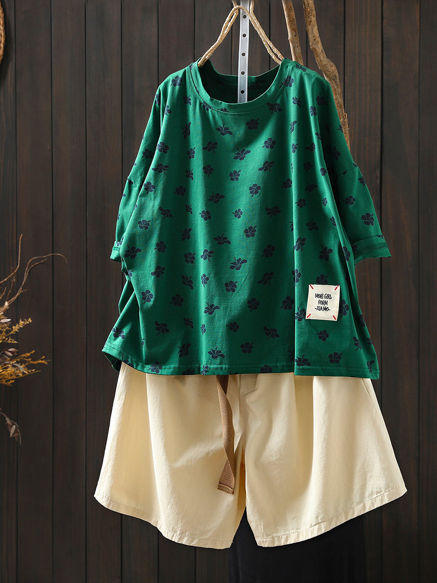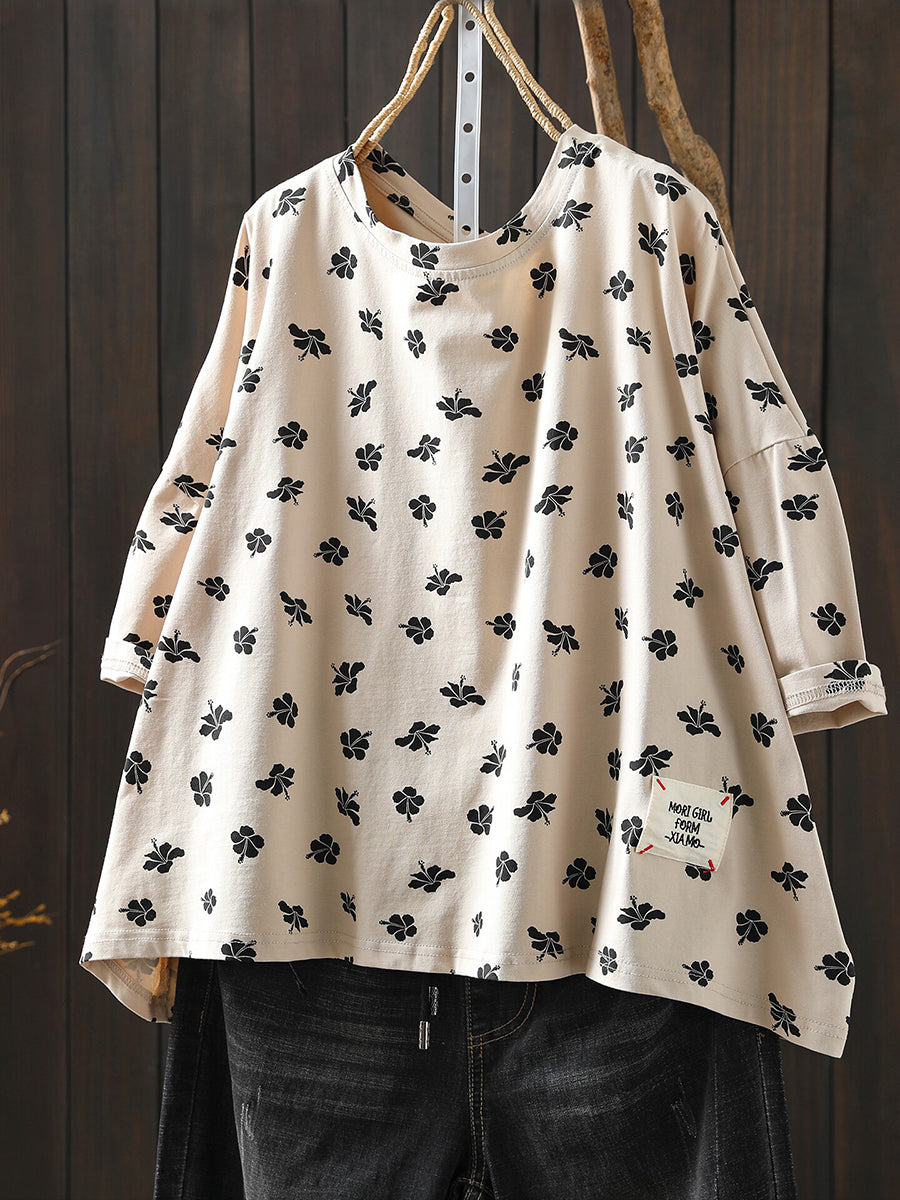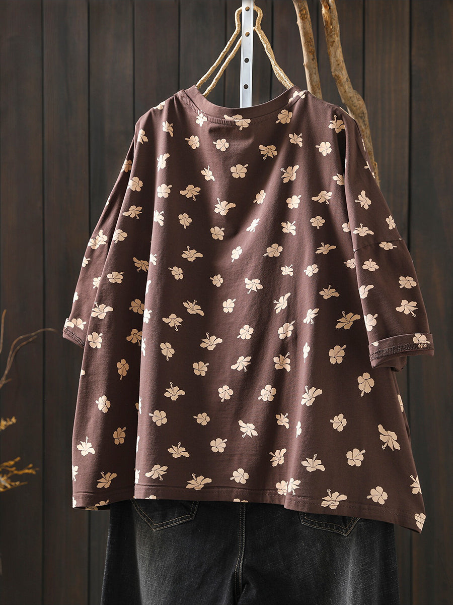 Damen Sommerhemd mit Vintage-Print und Rundhalsausschnitt