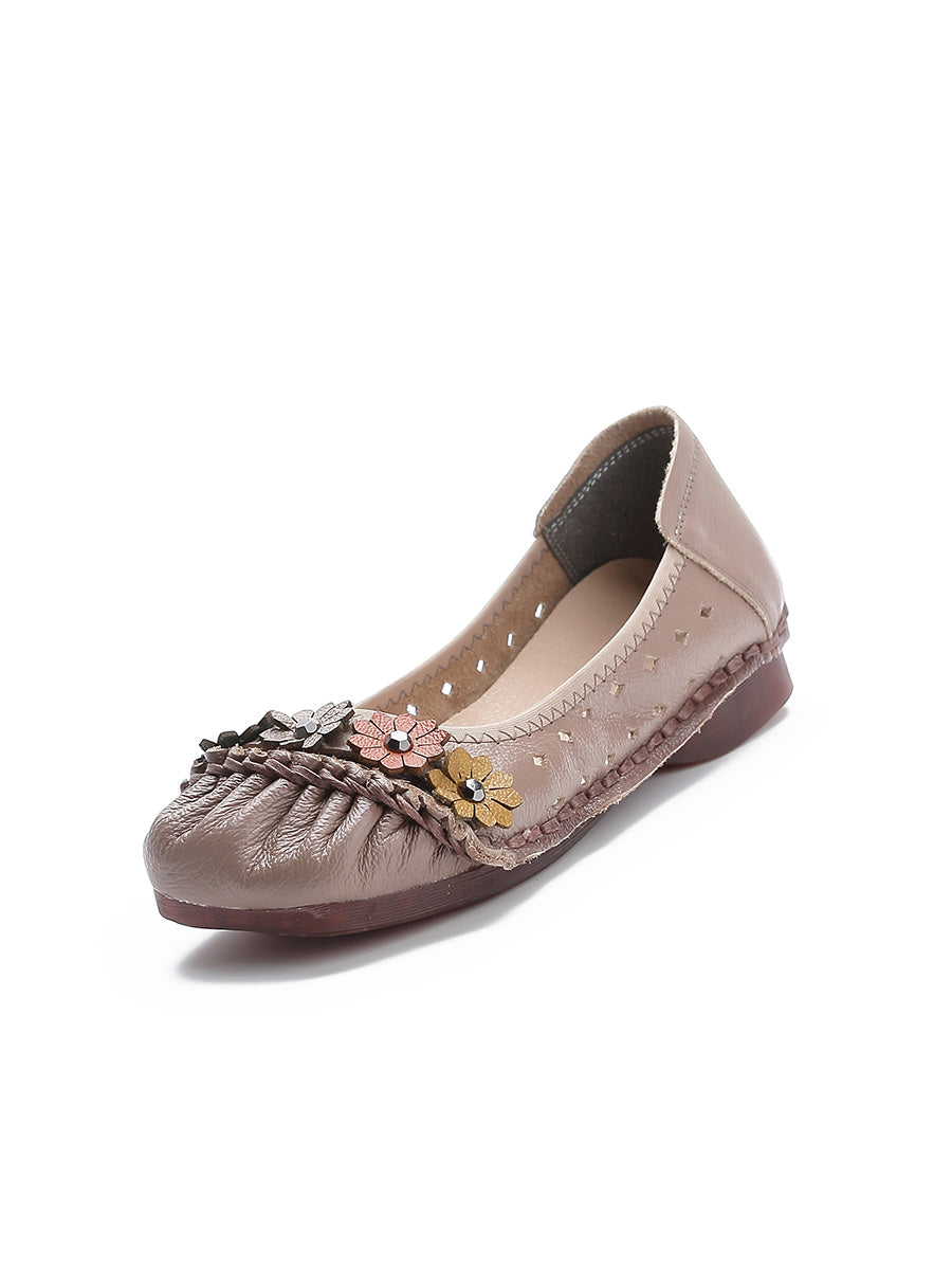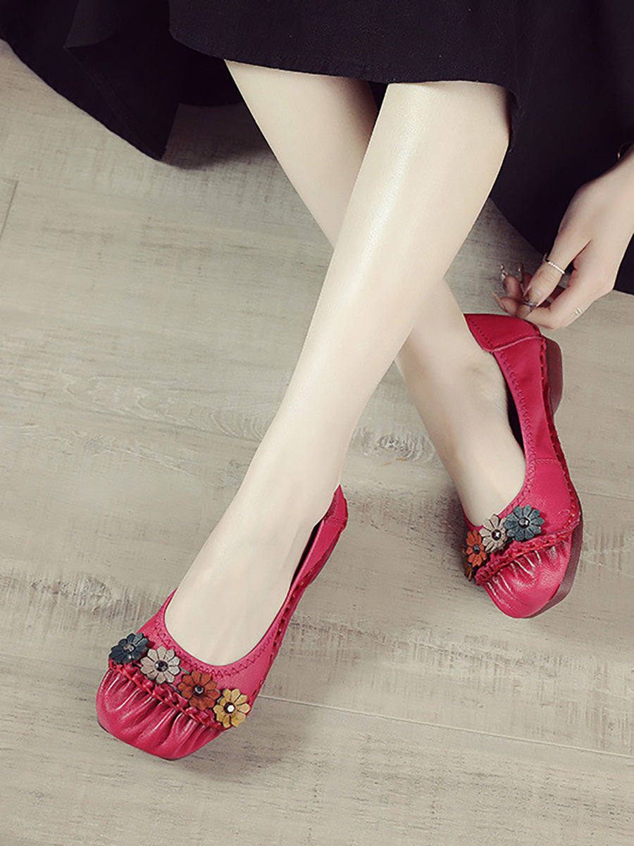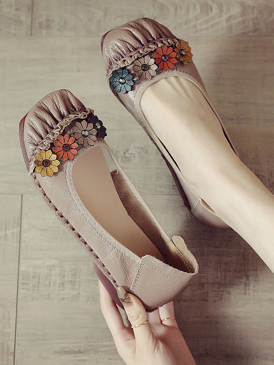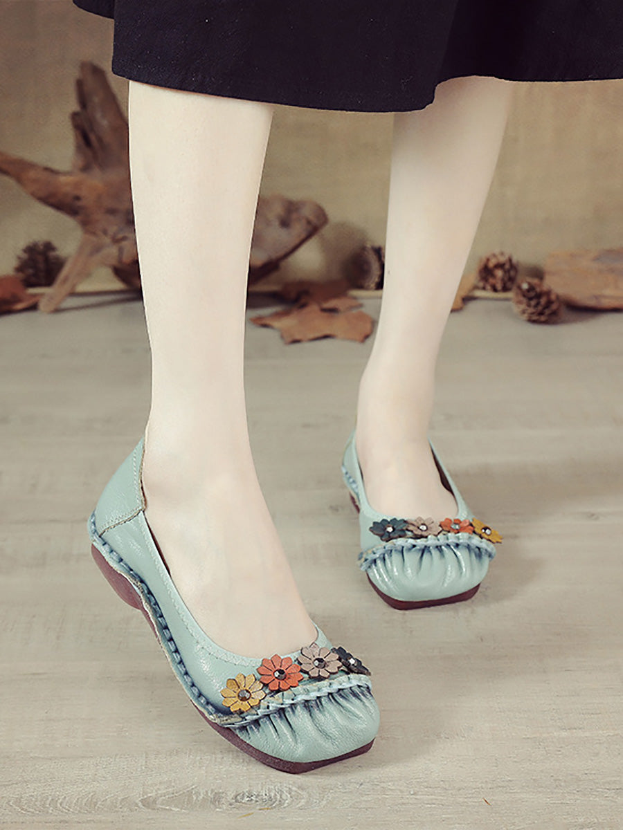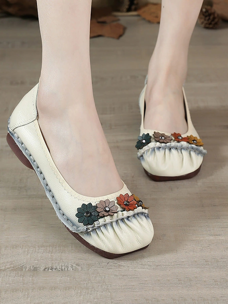 Damen Vintage Schuhe mit Blumenmuster aus echtem Leder, niedriger Absatz