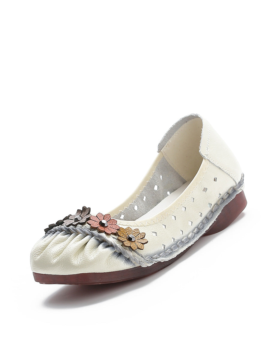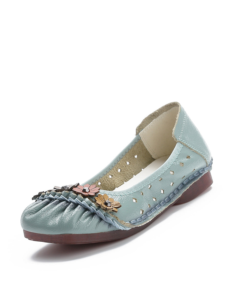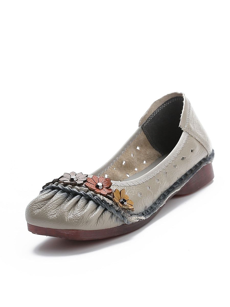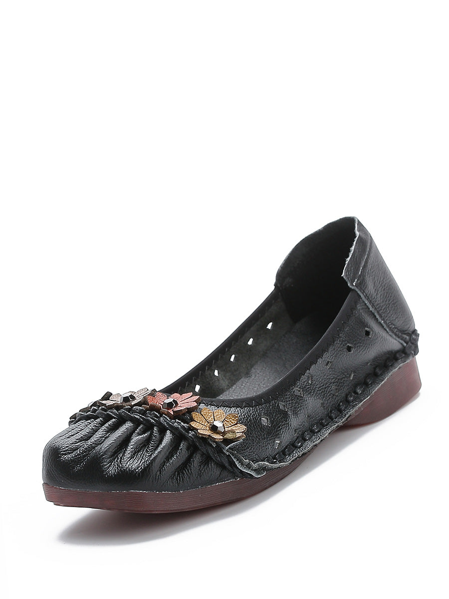 Damen Vintage Schuhe mit Blumenmuster aus echtem Leder, niedriger Absatz