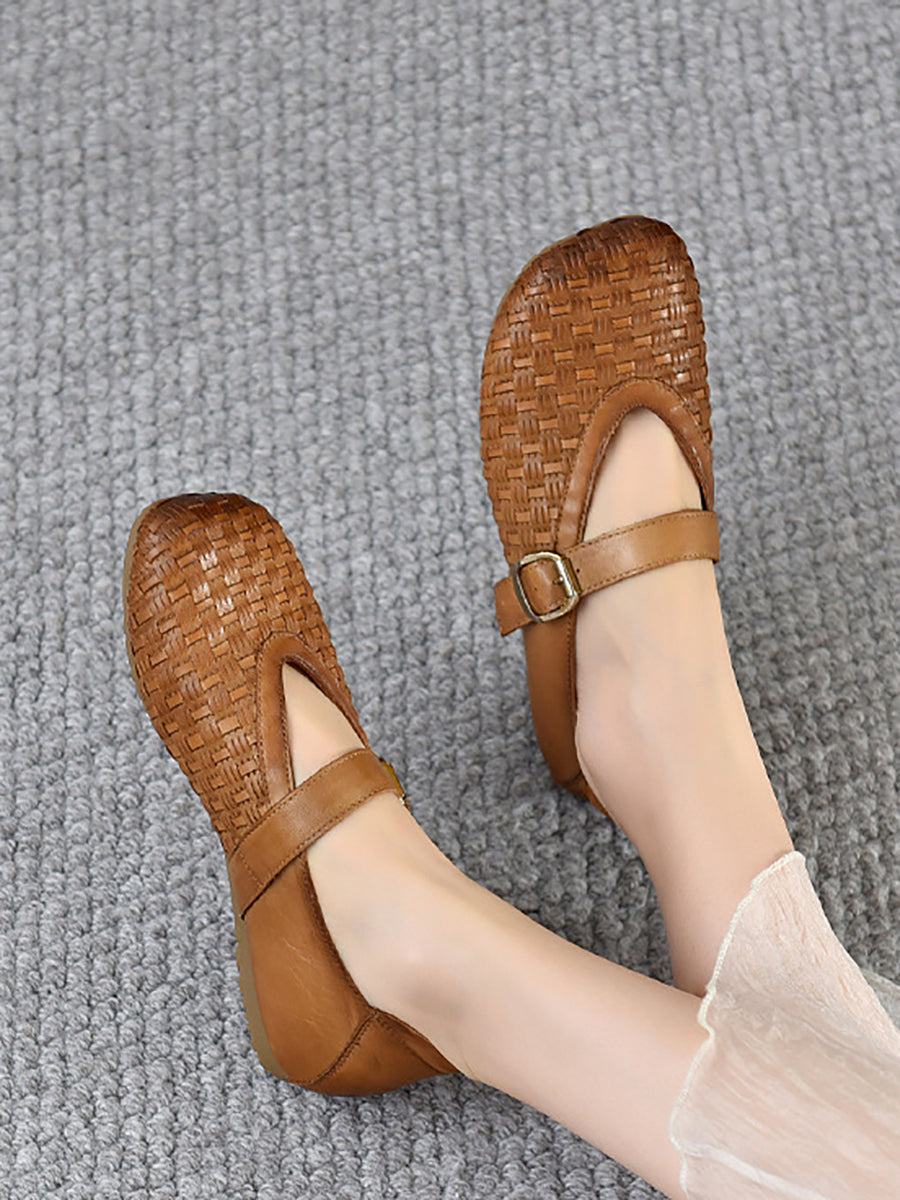 Damen Vintage Sommer Echtleder Schuhe
