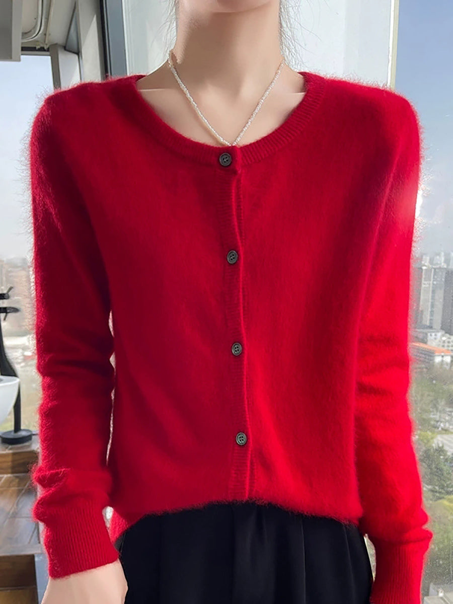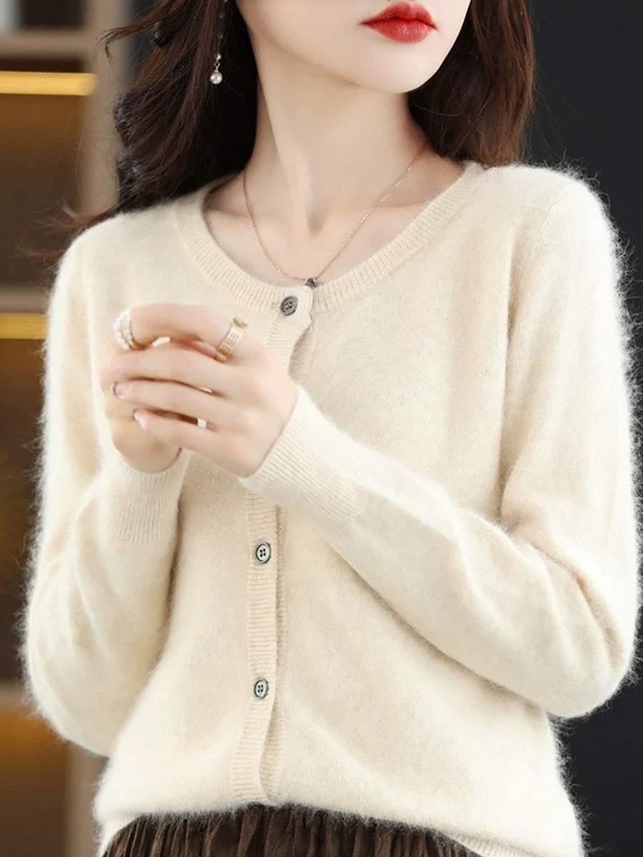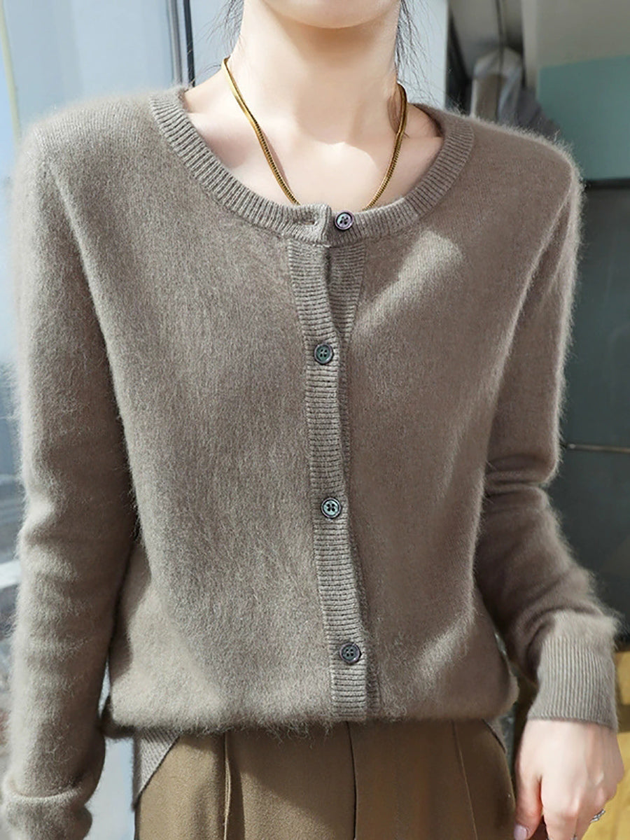 Damen Winter Artsy Rundhals-Cardigan-Pullover