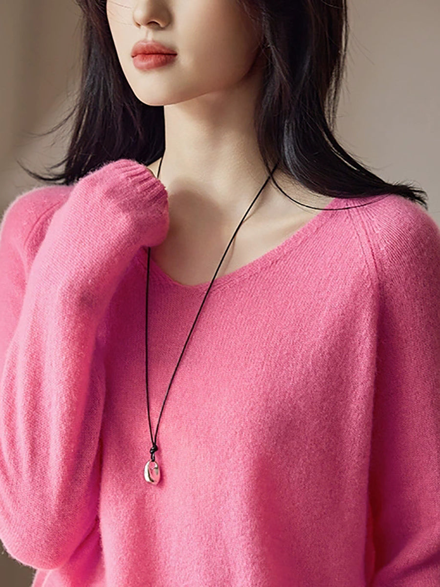 Γυναικείο Άνοιξη Artsy Pure Color Μάλλινο Πουλόβερ με V-Neck