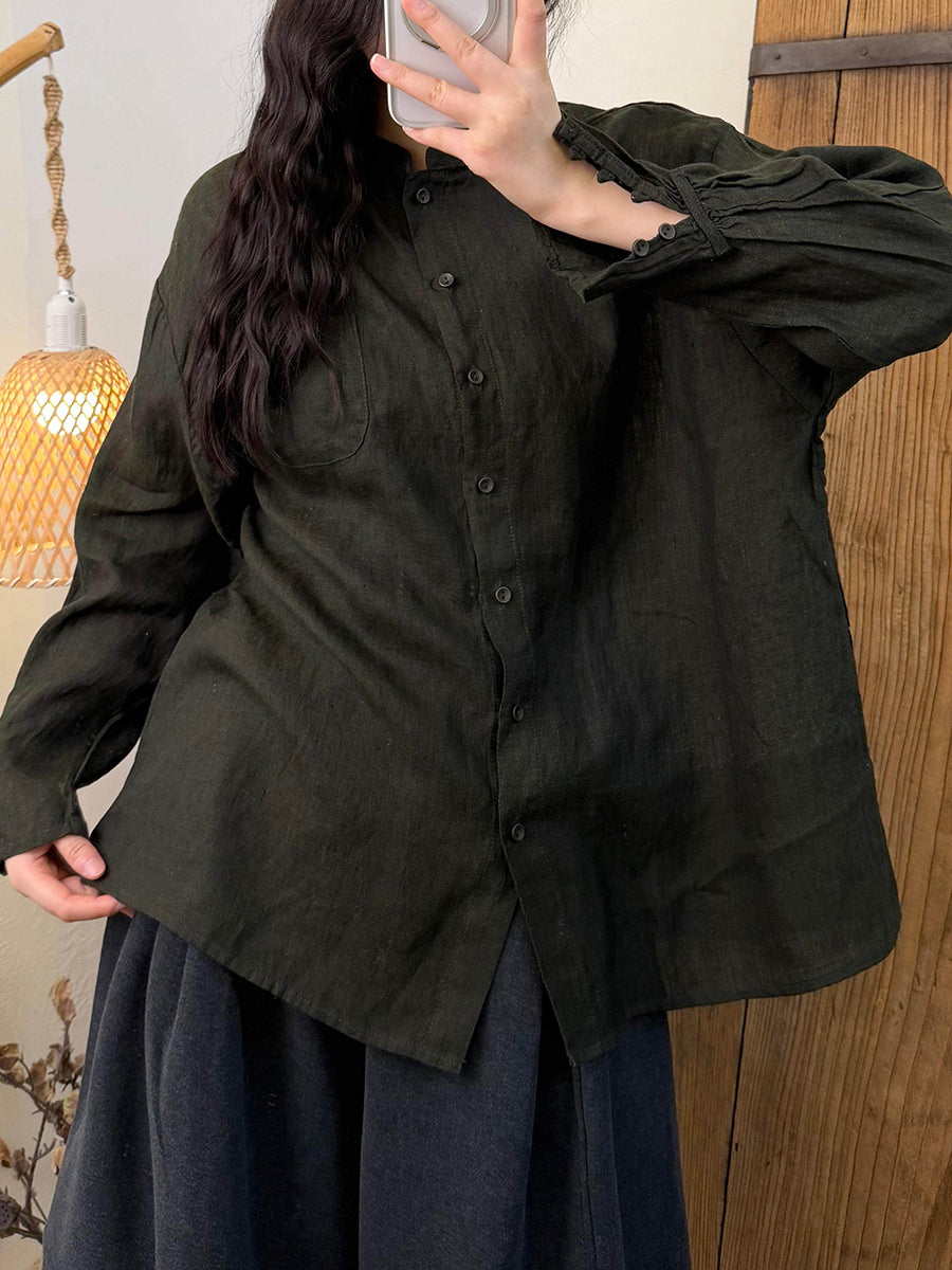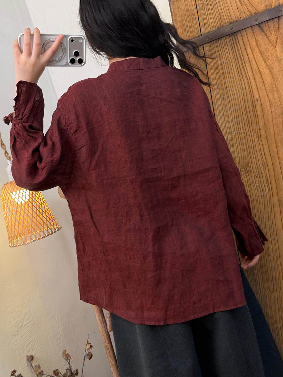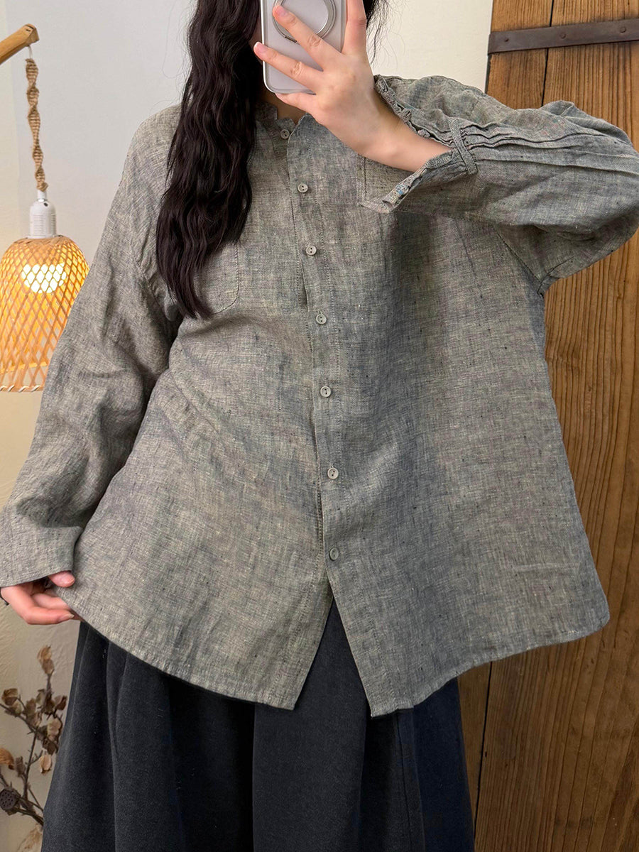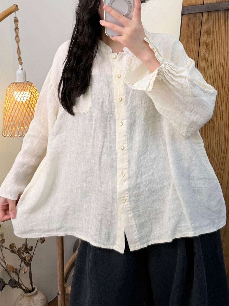 Γυναικείο πουκάμισο με γιακά και γιακά από λινό χρώμα, ανοιξιάτικο, καλλιτεχνικό