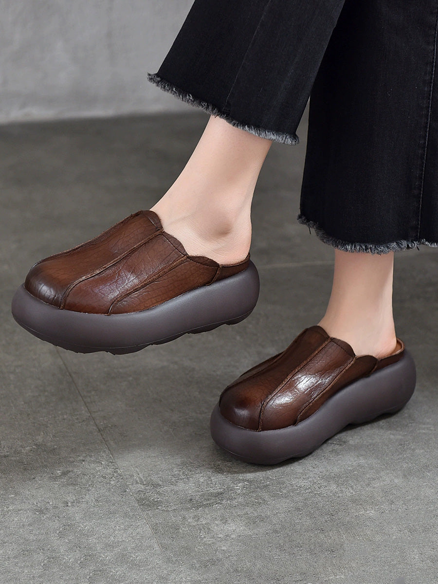 Γυναικείες καλοκαιρινές παντόφλες πλατφόρμας από γνήσιο δέρμα με συρμάτινη επένδυση
