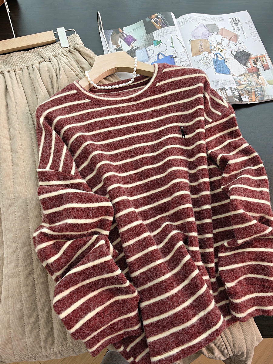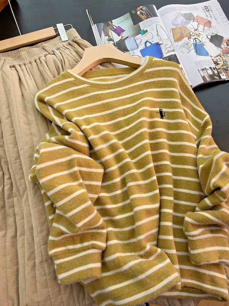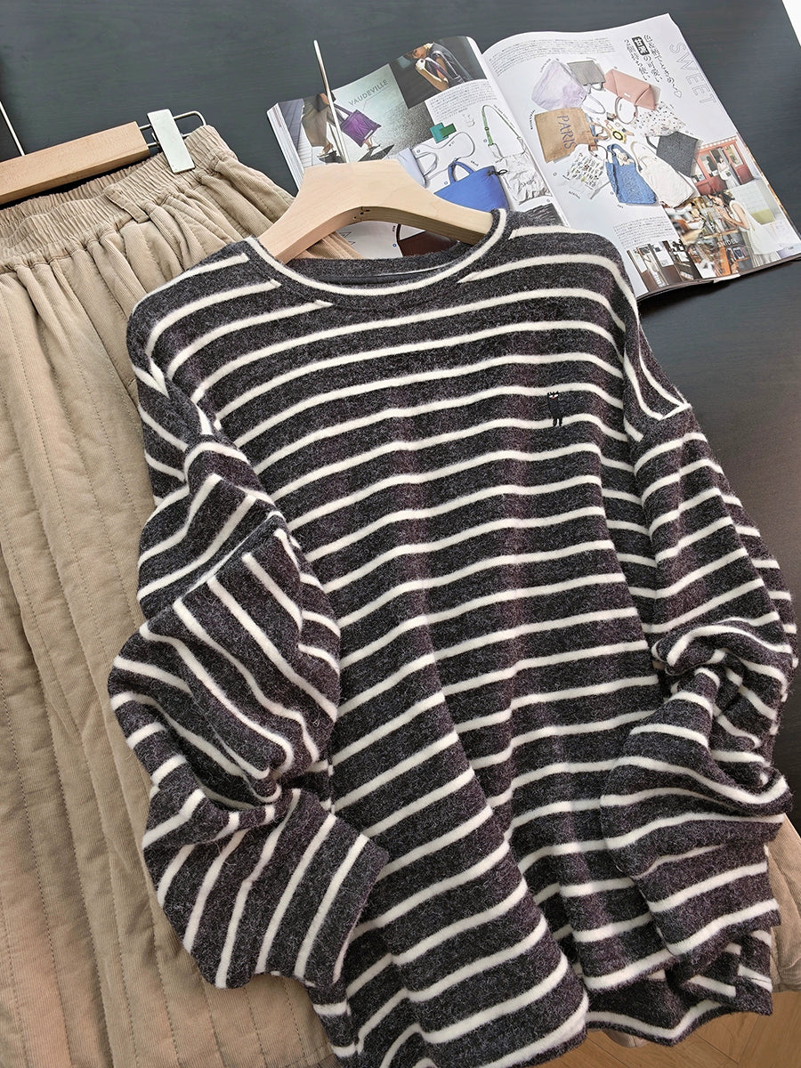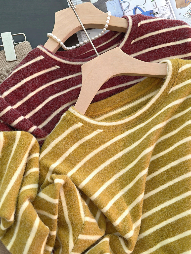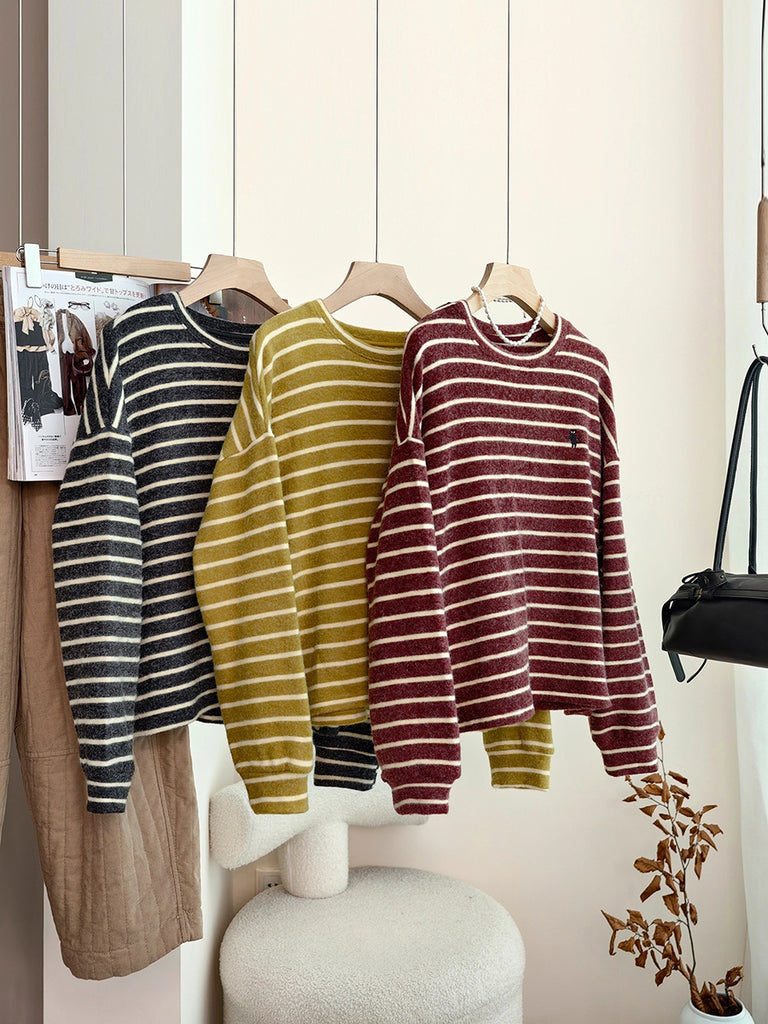 Γυναικεία Χειμερινή Ρετρό Ριγέ Μπλούζα με O-Neck