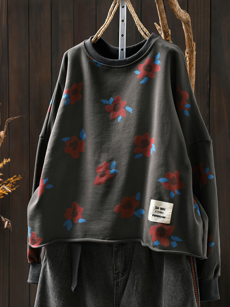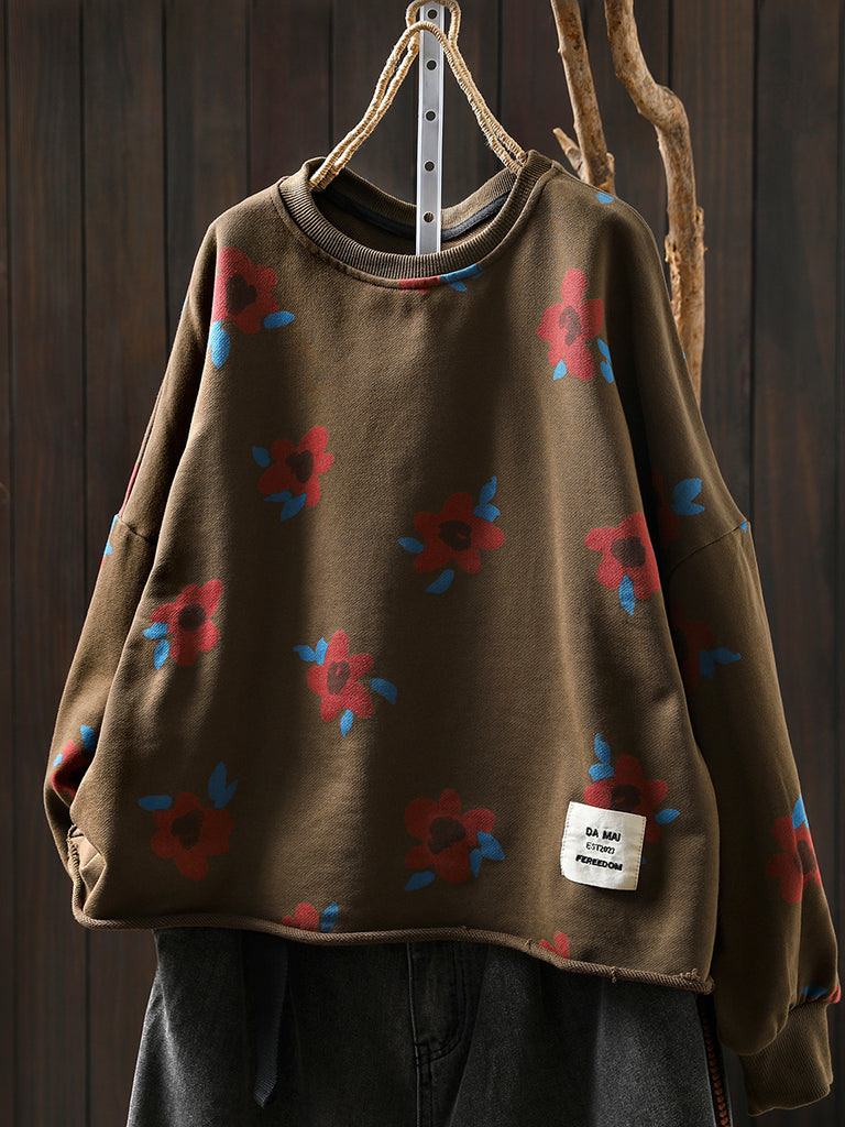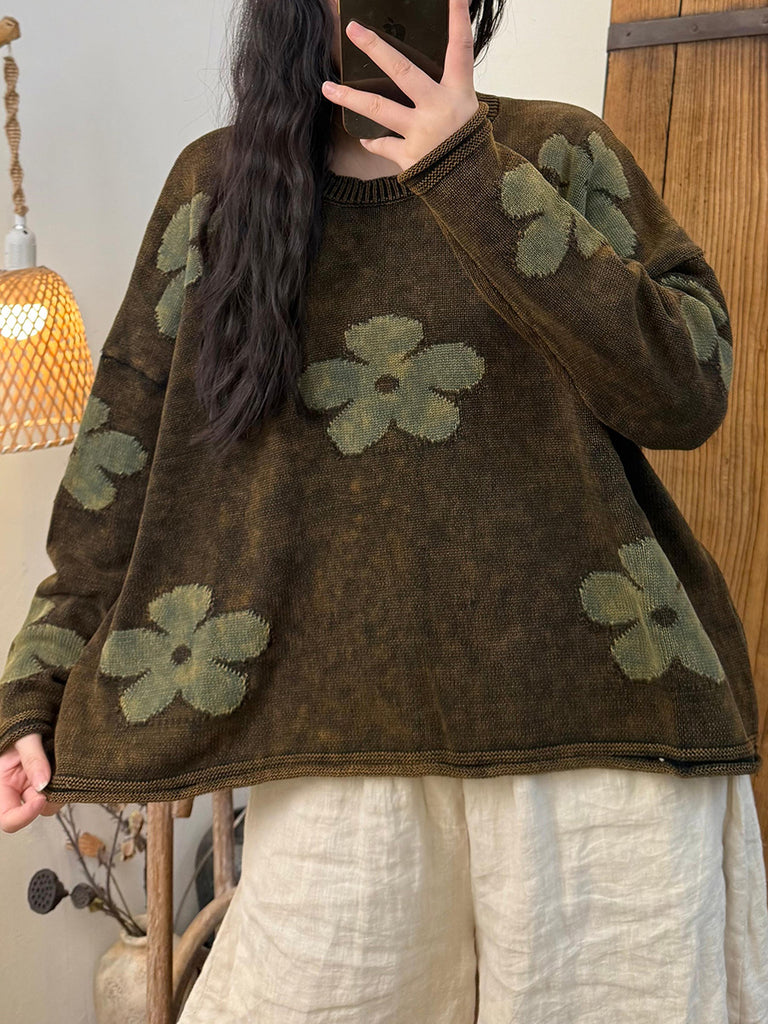 Γυναικείο Φθινοπωρινό Ρετρό Πουλόβερ με Λουλούδια και O-Neck