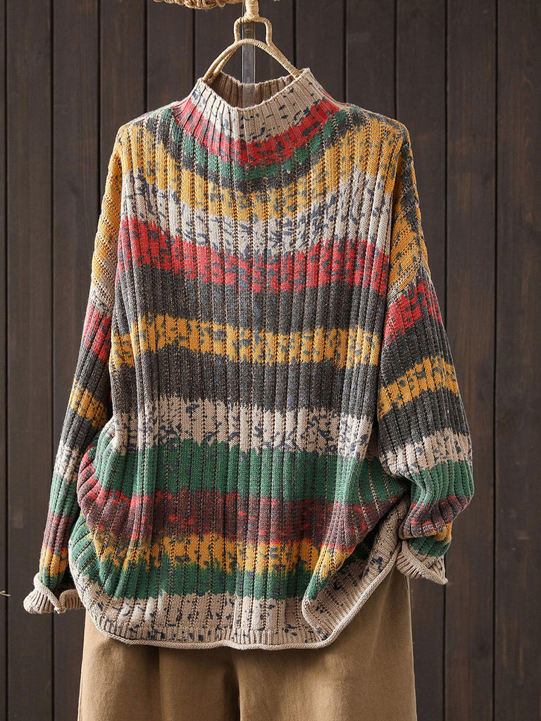 Γυναικείο Φθινοπωρινό Πουλόβερ με Ρίγες και Μισό Ζιβάγκο με Χρώμα