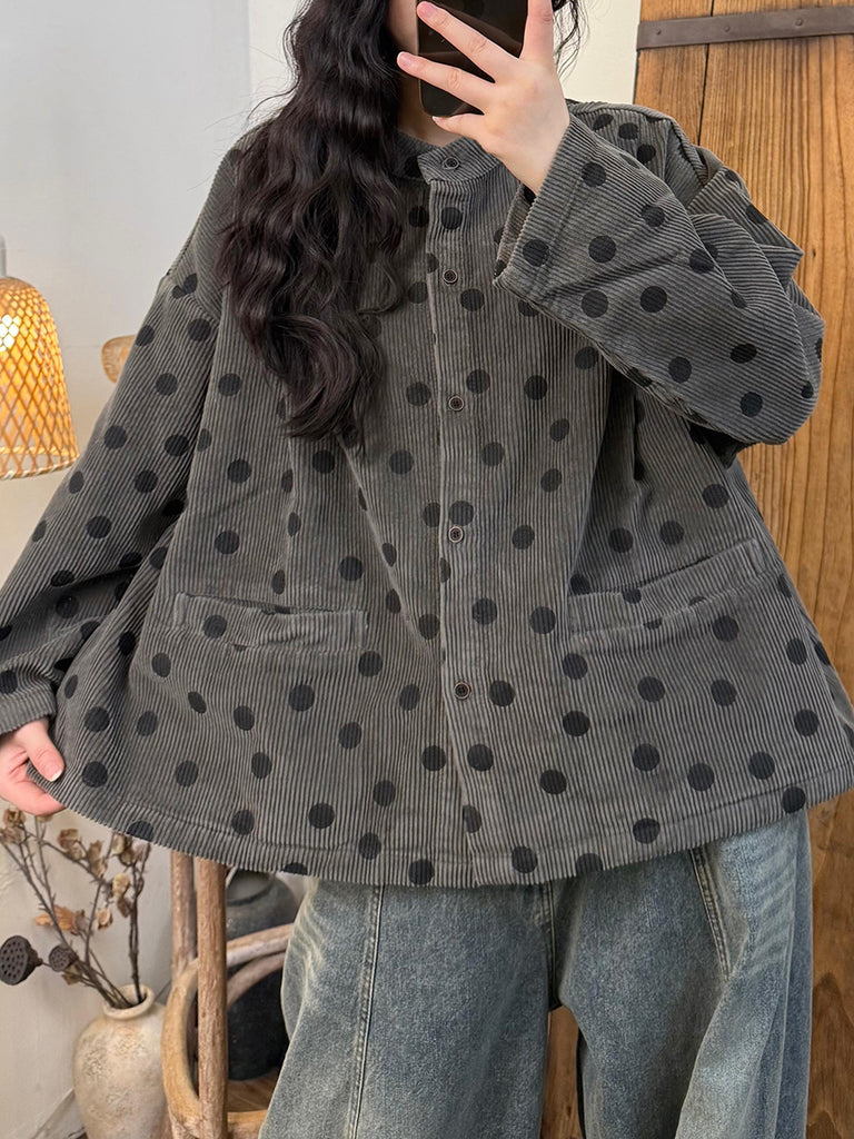 Γυναικείο vintage φθινοπωρινό μπουφάν με κουκκίδες και γιακά με περίπτερο