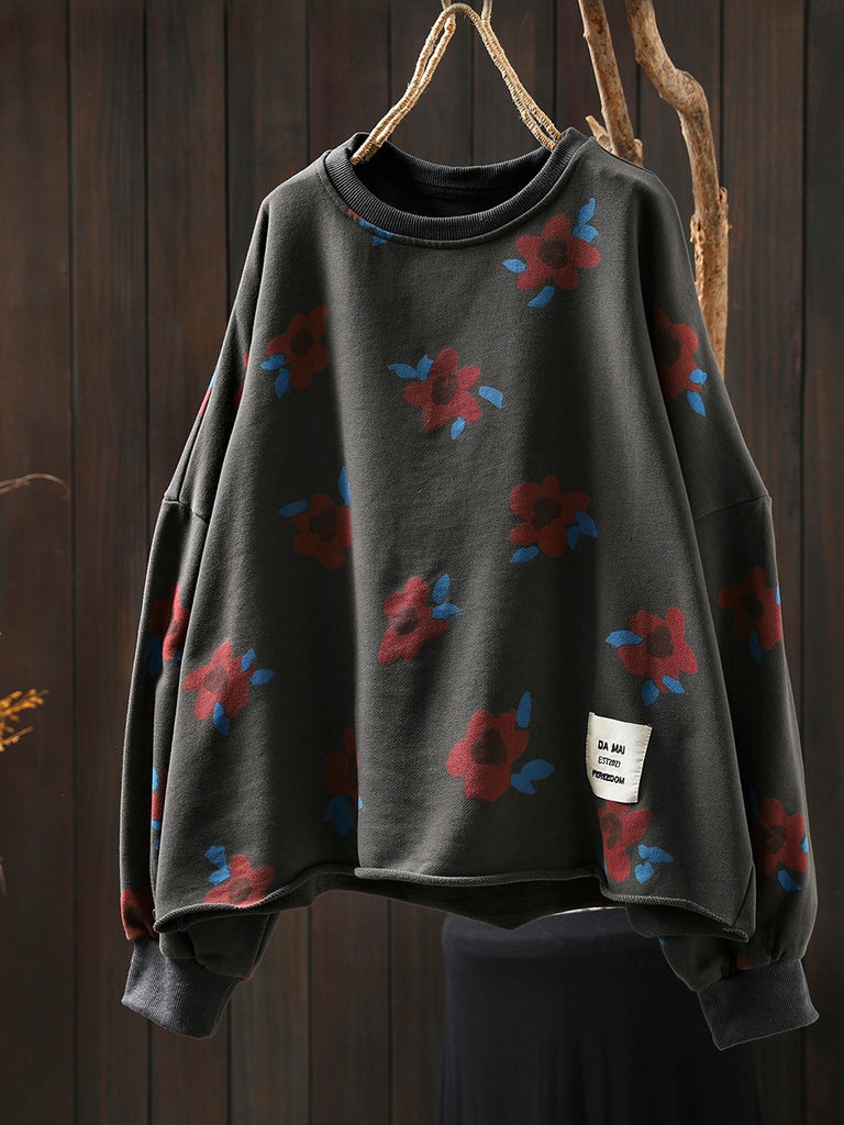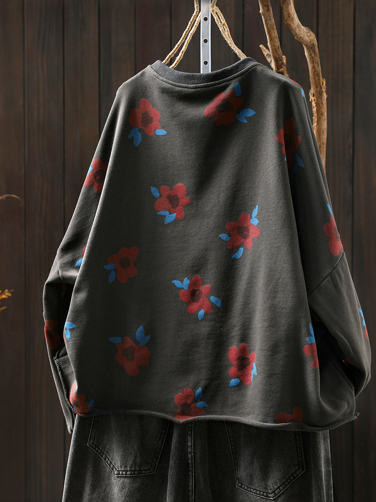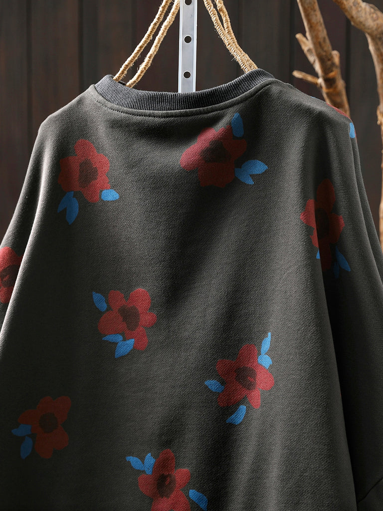 Γυναικεία Φθινοπωρινή Μπλούζα με Λουλούδια και O-Neck από Βαμβάκι