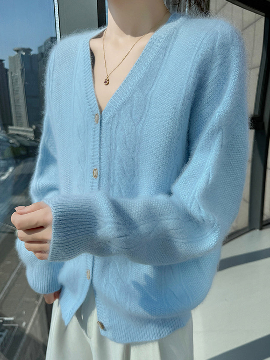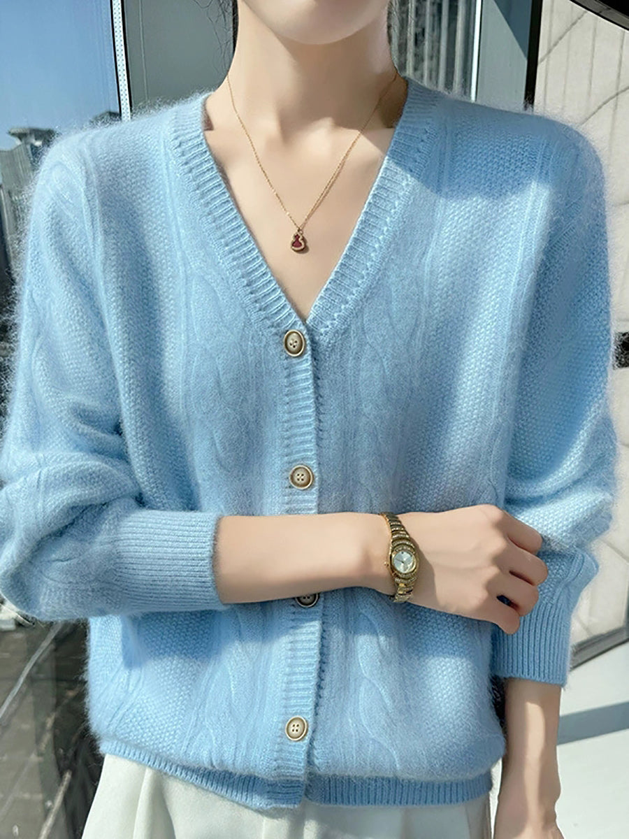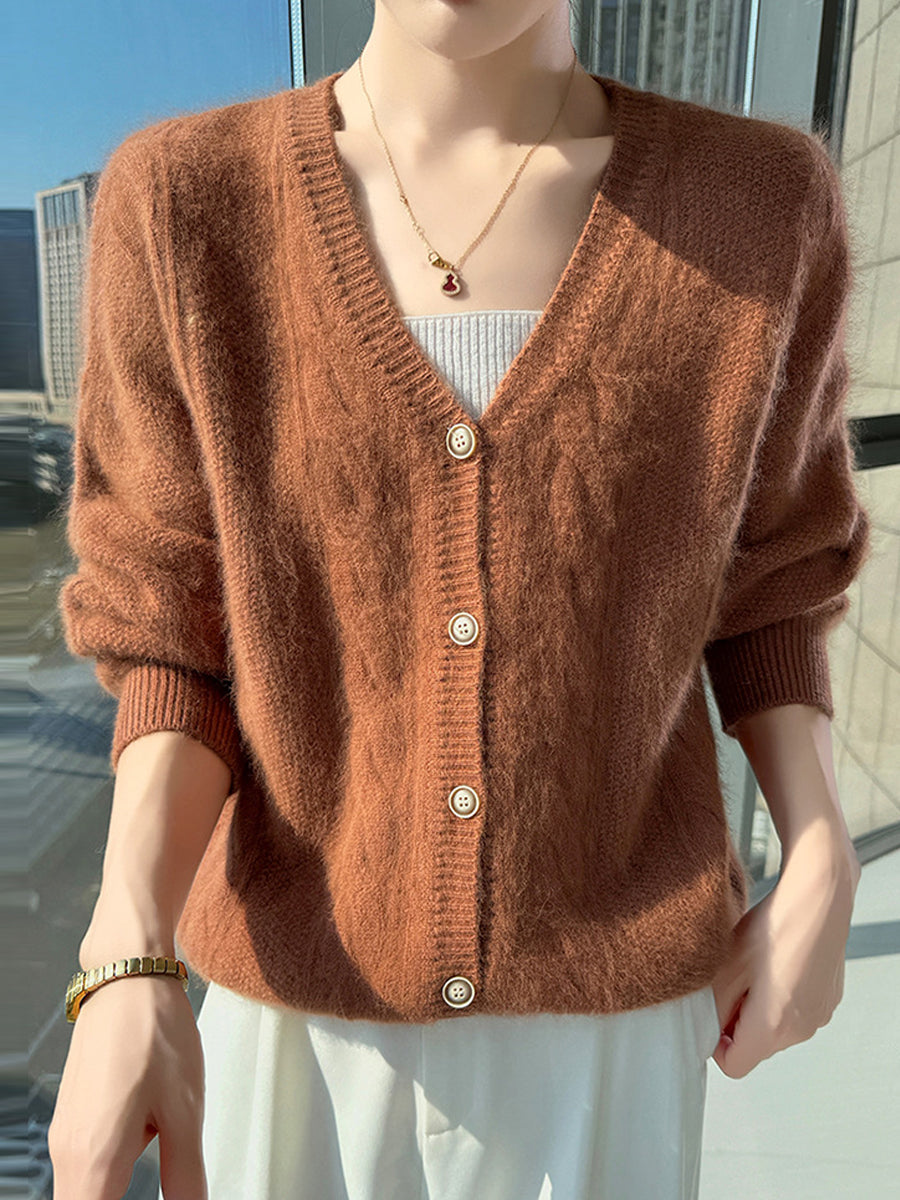 Γυναικείο Φθινοπωρινό Casual Pure Color V-Neck Πουλόβερ