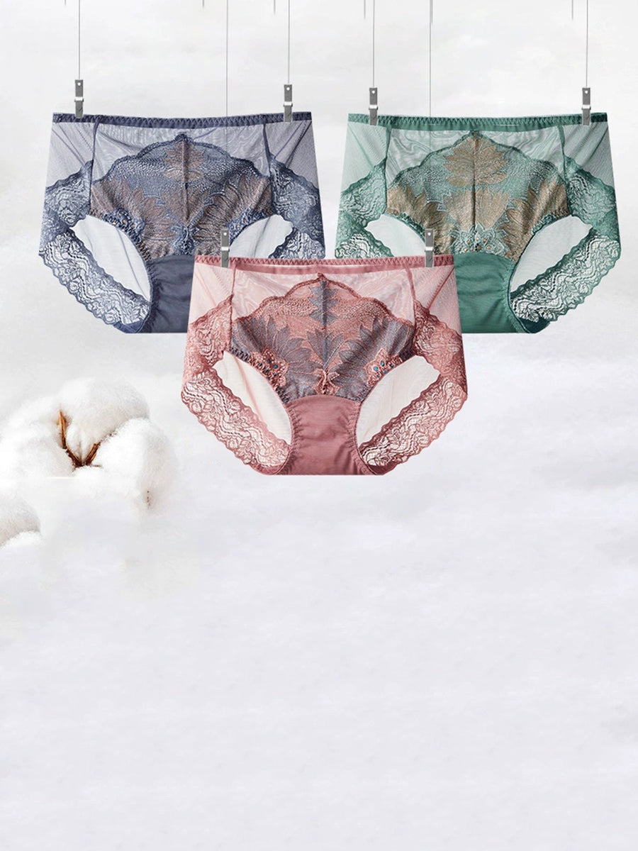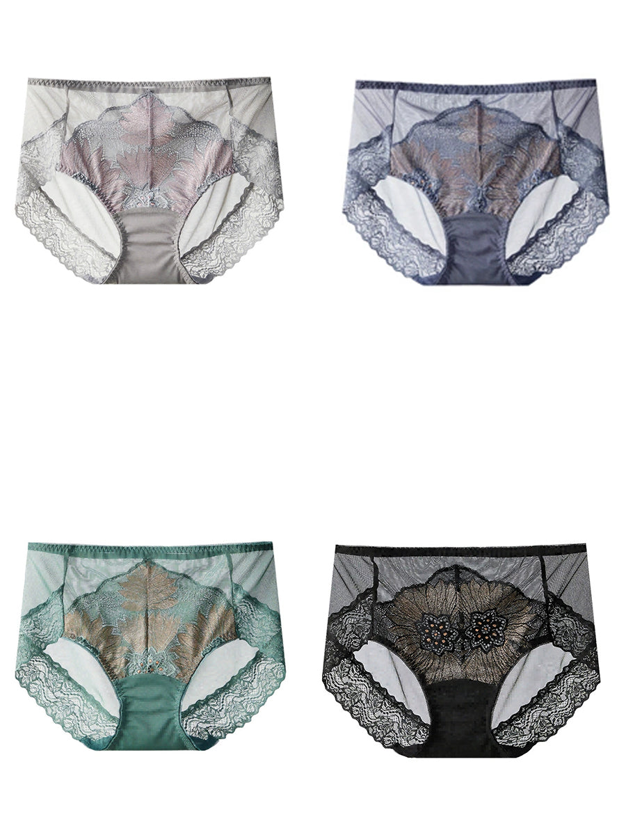 Γυναικεία Εσώρουχα με Ψηλή Μέση και Δαντέλα, 4 Τεμάχια