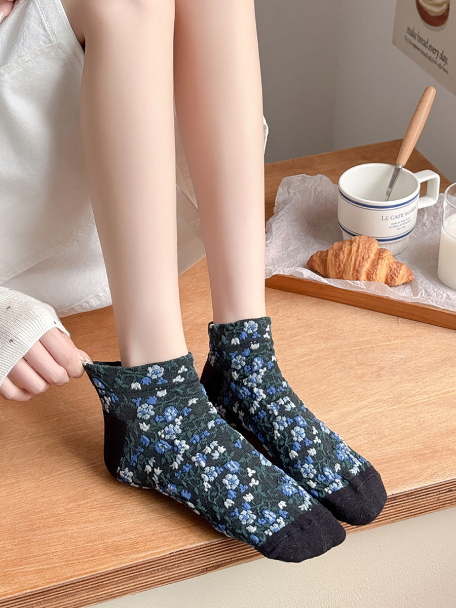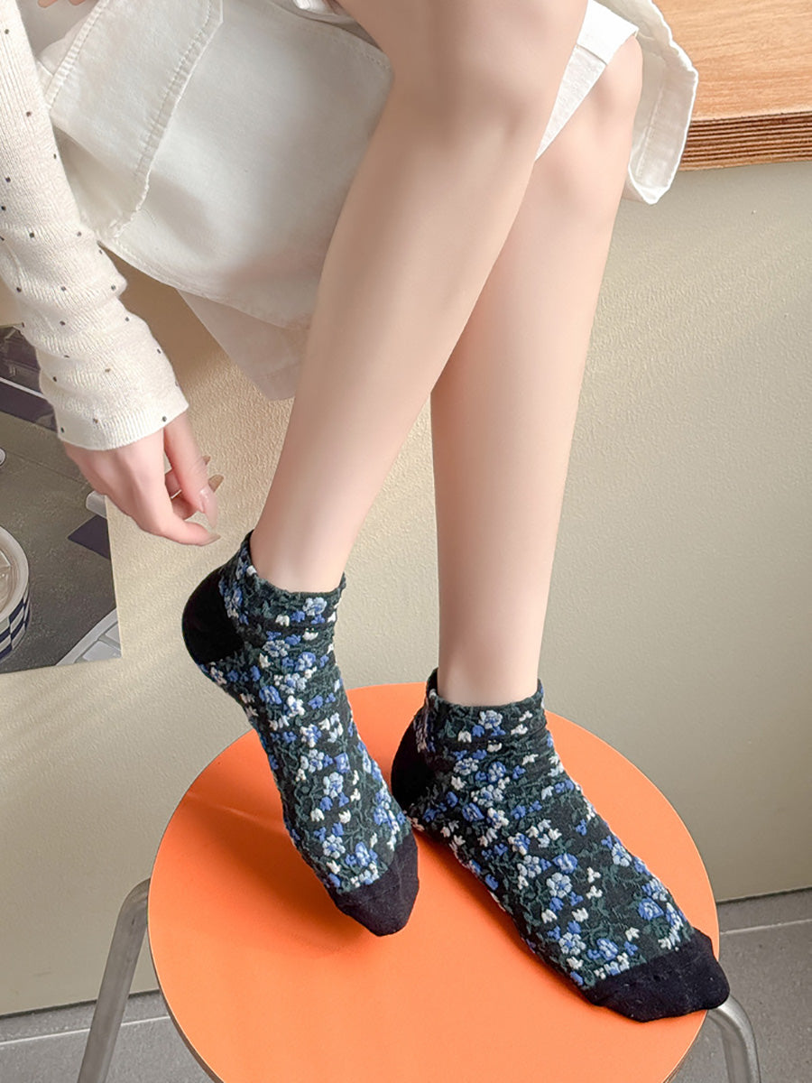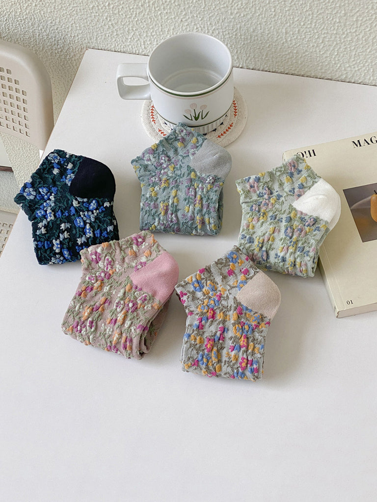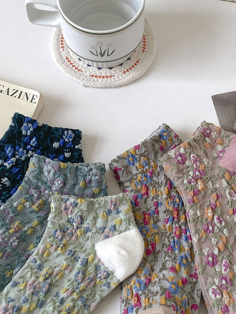 5 ζευγάρια γυναικείες Artsy Floral Jacquard Κοντές Κάλτσες Colorblock