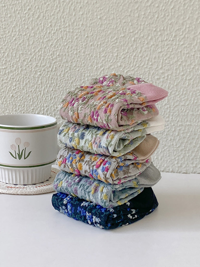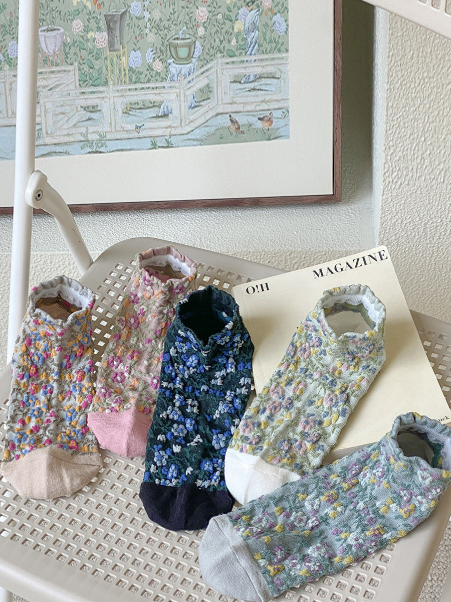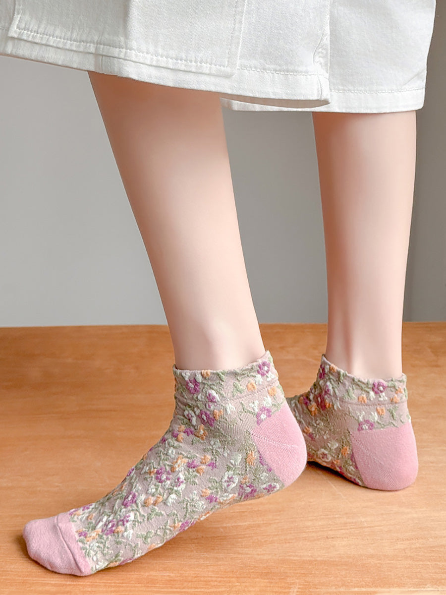 5 ζευγάρια γυναικείες Artsy Floral Jacquard Κοντές Κάλτσες Colorblock