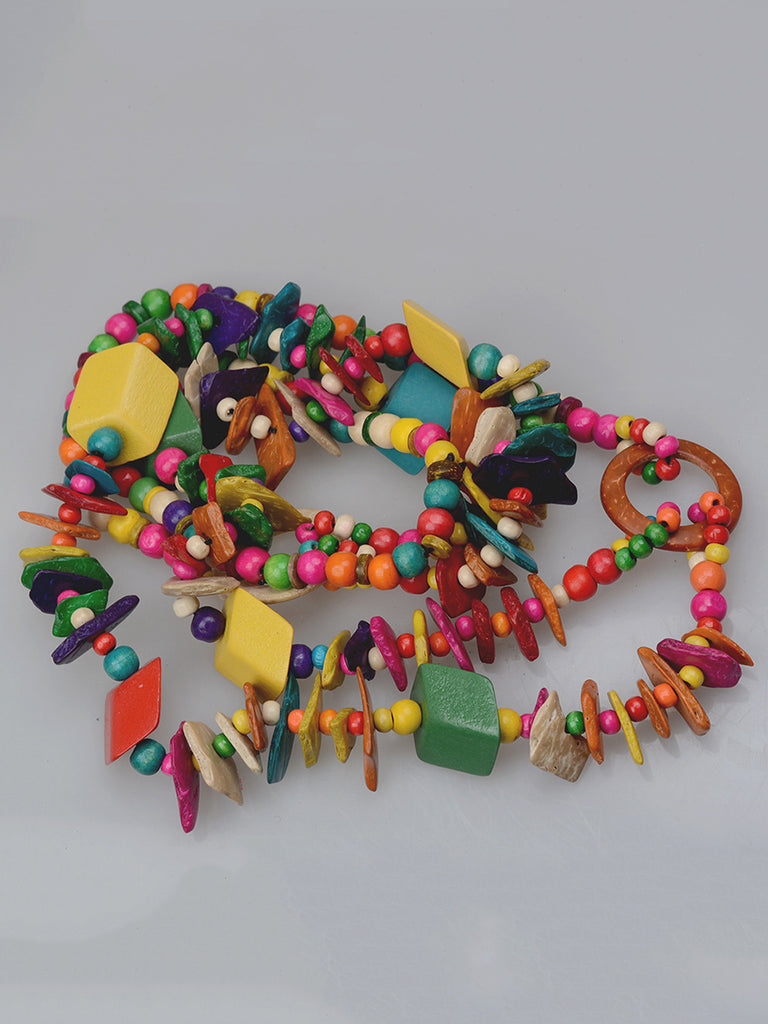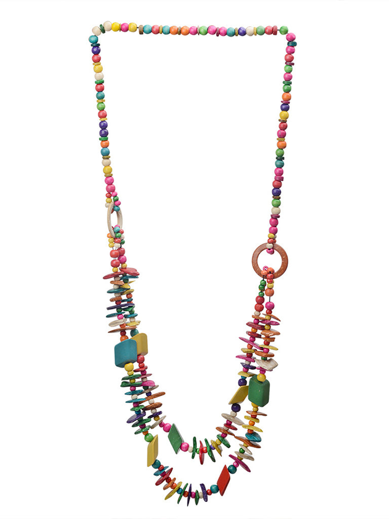 Ethnic Πολύχρωμο Ξύλινο Πλεκτό Κολιέ με Χάντρες