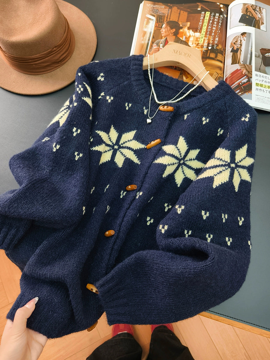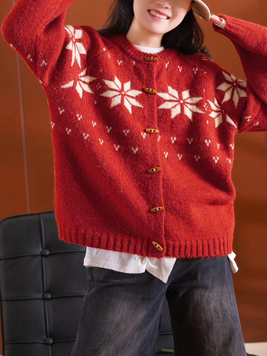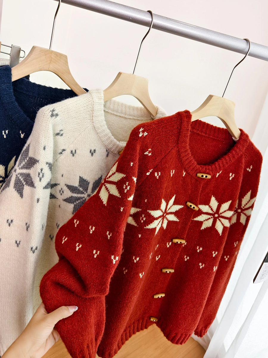 Γυναικείο Φθινοπωρινό Πλεκτό Πουλόβερ με Λουλούδια και O-Neck