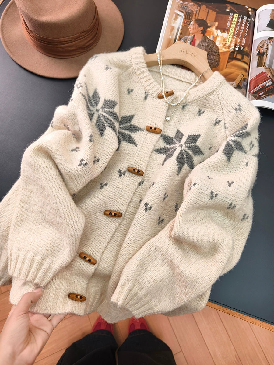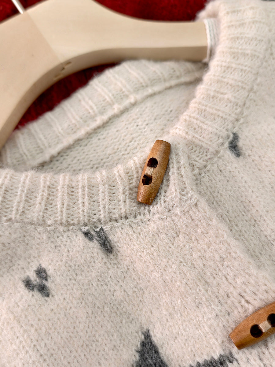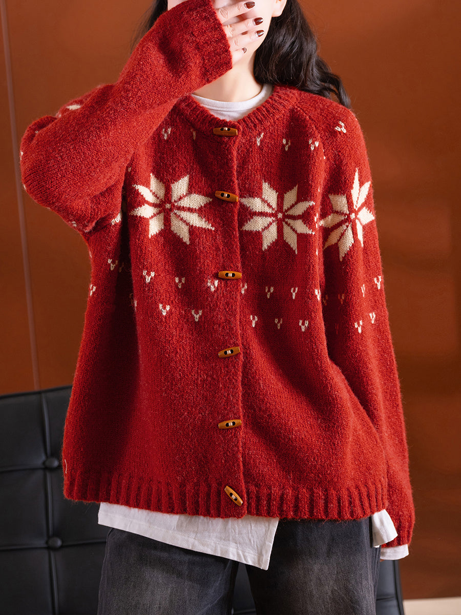 Γυναικείο Φθινοπωρινό Πλεκτό Πουλόβερ με Λουλούδια και O-Neck