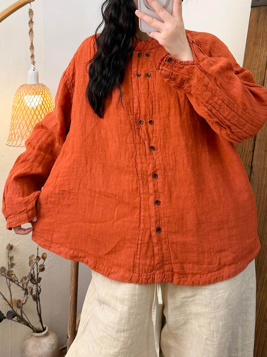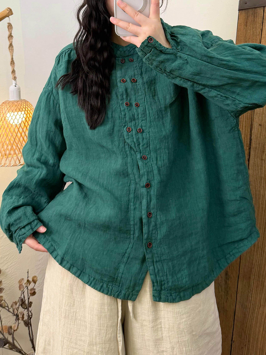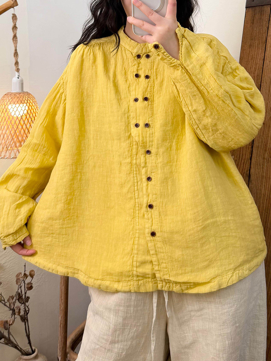 Γυναικείο Φθινοπωρινό Ρετρό Πουκάμισο από Λινό με Στάντ Κολάρο