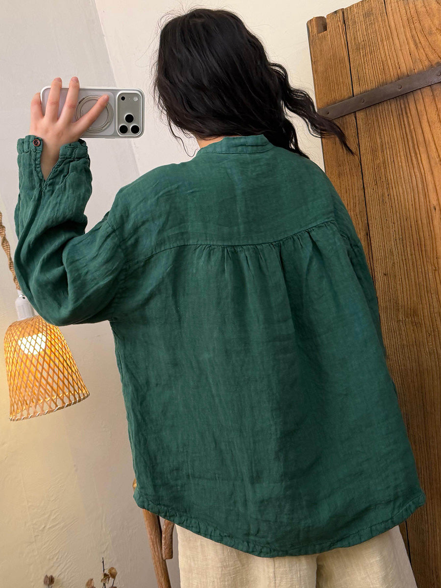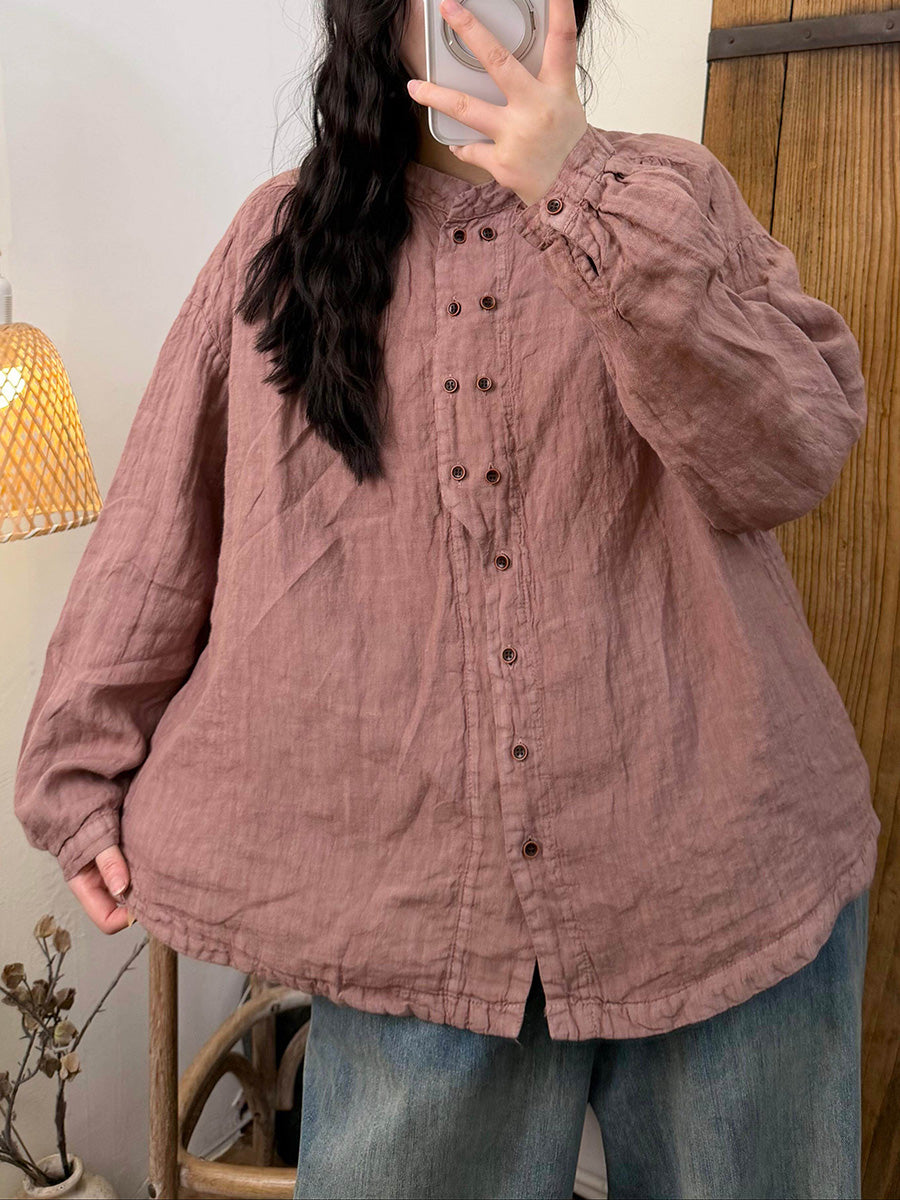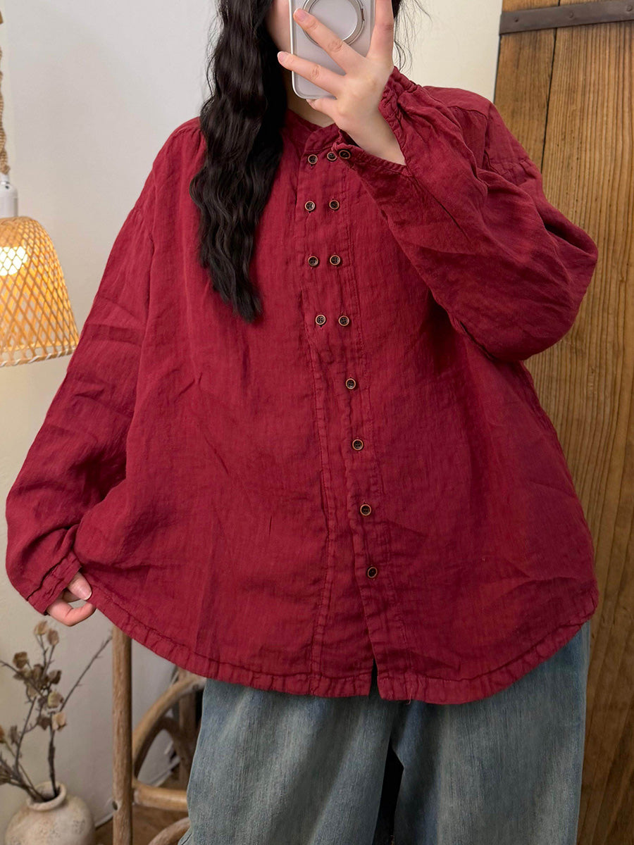 Γυναικείο Φθινοπωρινό Ρετρό Πουκάμισο από Λινό με Στάντ Κολάρο