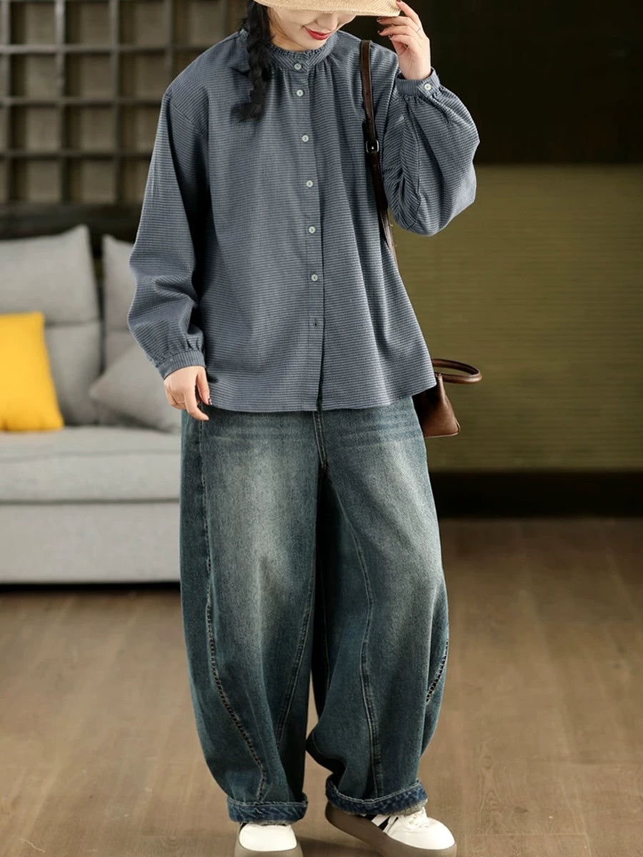 Γυναικείο πουκάμισο με ανοιξιάτικο στυλ Artsy Lattice Stand Collar από 100% βαμβάκι