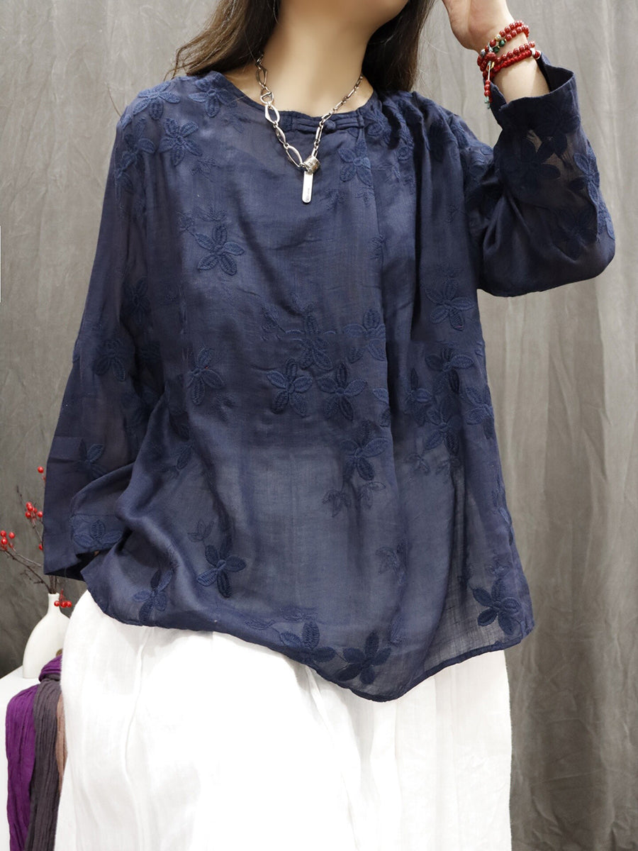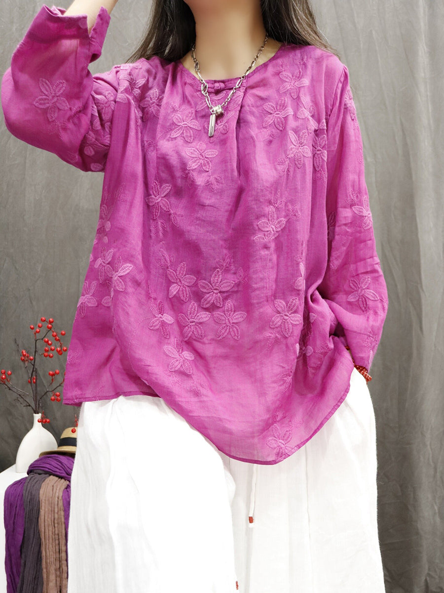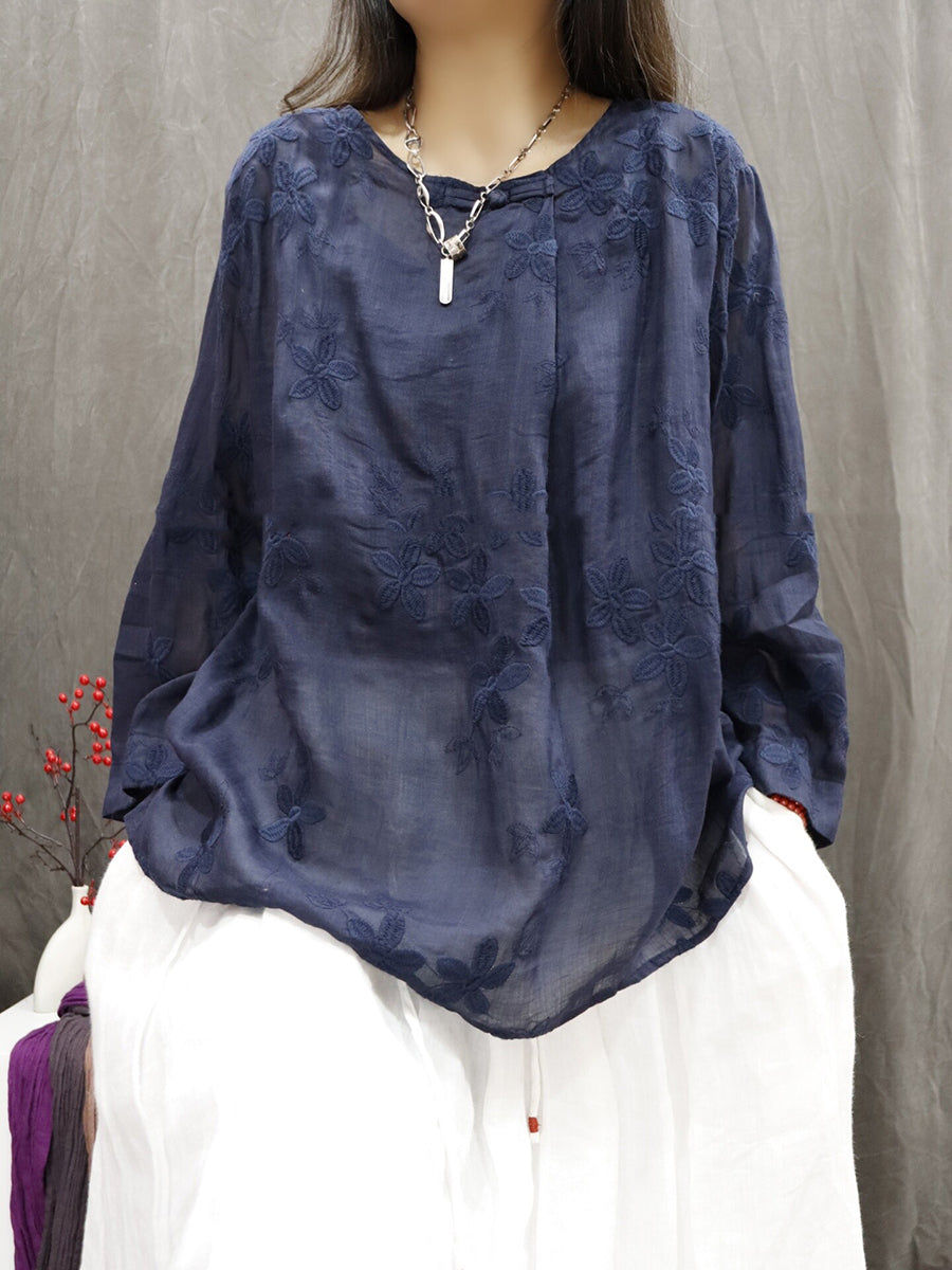 Γυναικεία Καλοκαιρινή Μπλούζα με Κέντημα Artsy από 100% Ραμί