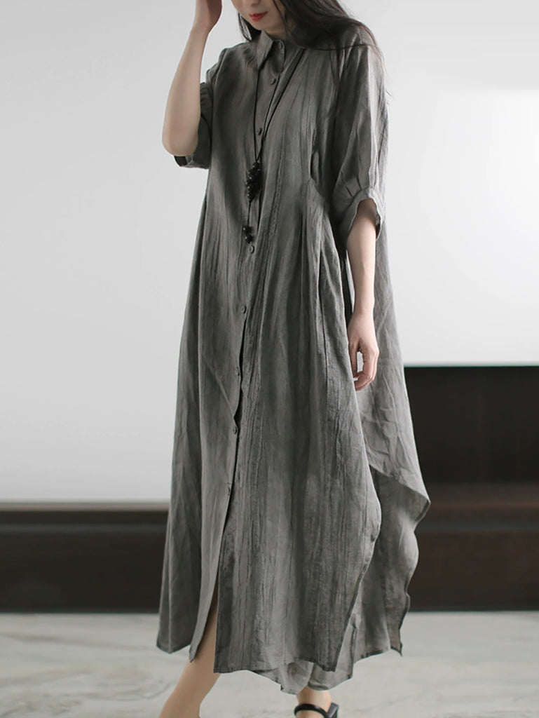 Γυναικείο Καλοκαιρινό Φόρεμα Πουκάμισου Artsy Pure Color 100%Λινό