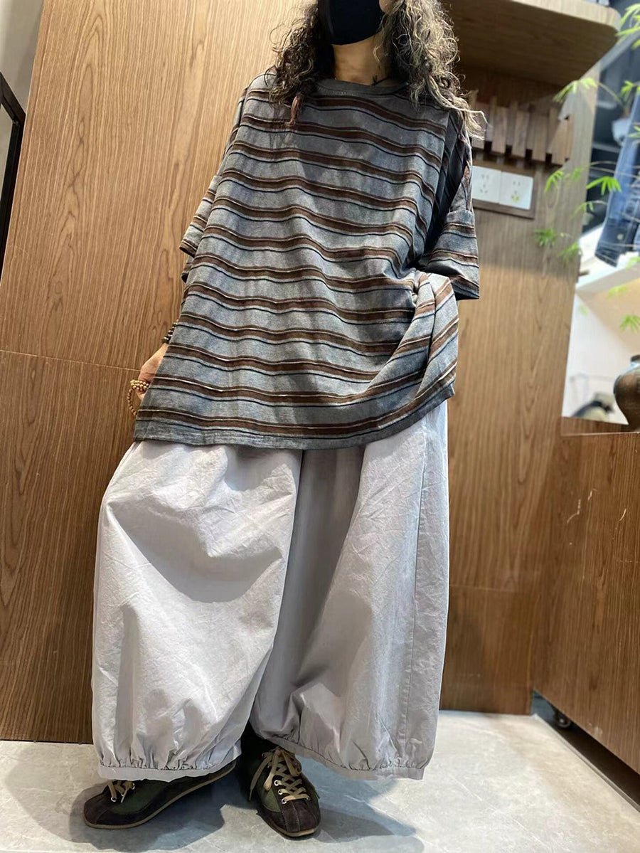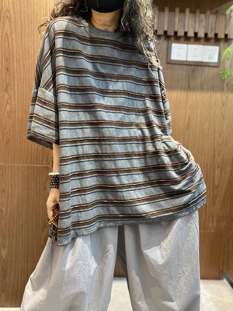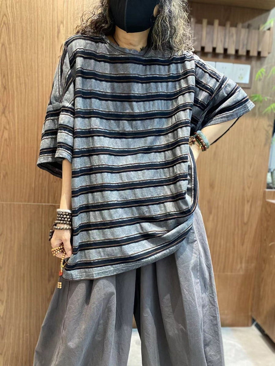 Γυναικεία Καλοκαιρινή Μπλούζα με Ρίγες από Βαμβάκι και O-Neck
