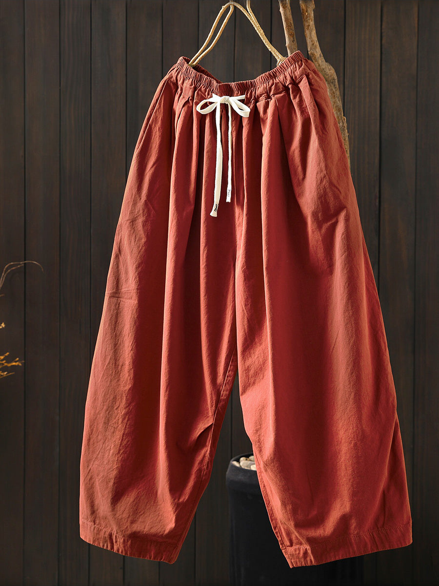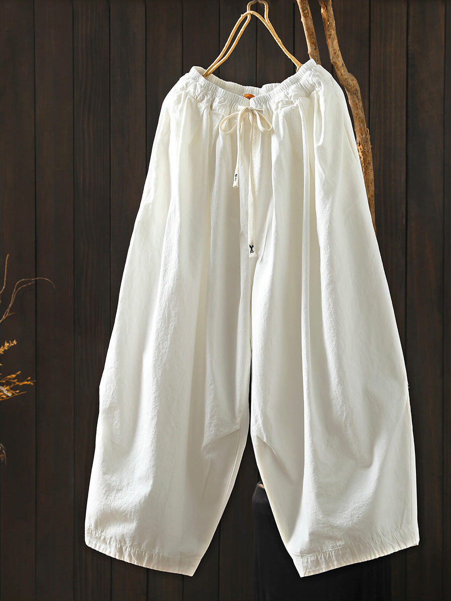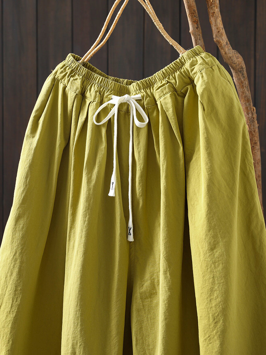 Γυναικείο καλοκαιρινό παντελόνι με φαρδιά μπατζάκια σε καθαρό χρώμα