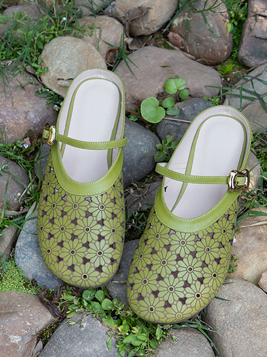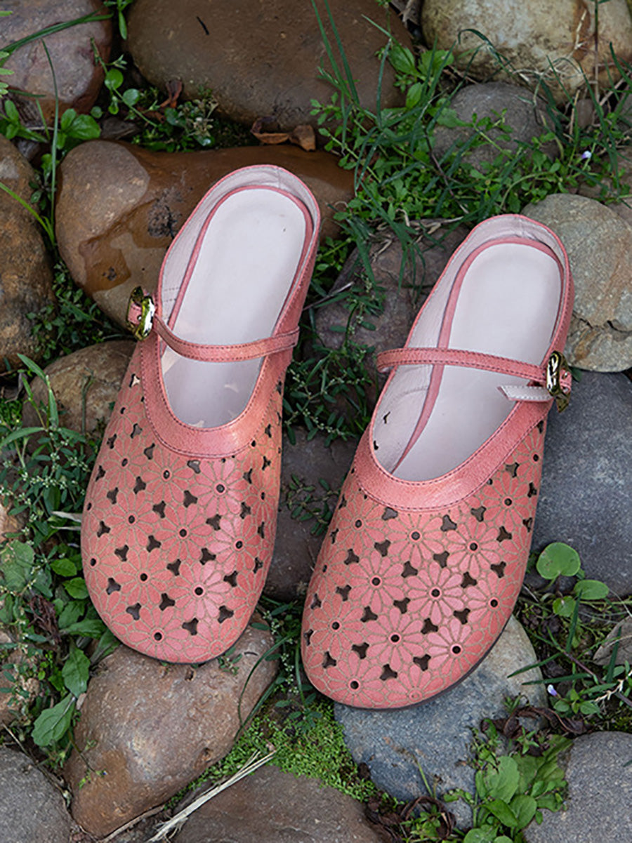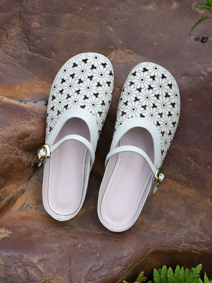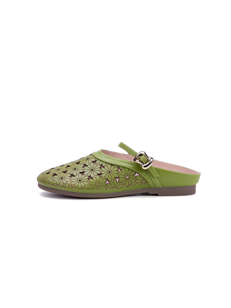 Γυναικείες καλοκαιρινές παντόφλες από γνήσιο δέρμα με κοίλο άνοιγμα