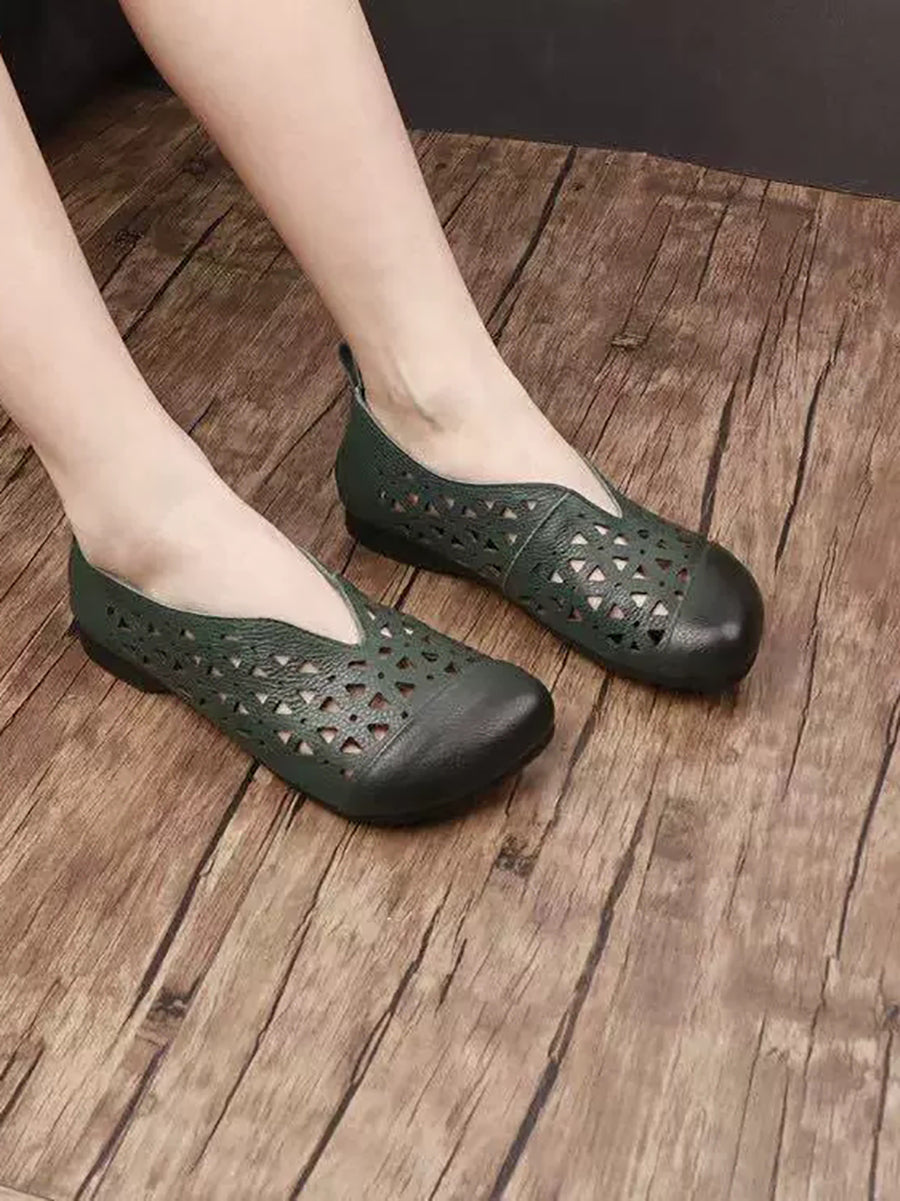 Γυναικεία καλοκαιρινά δερμάτινα φλατ παπούτσια Hollow Out