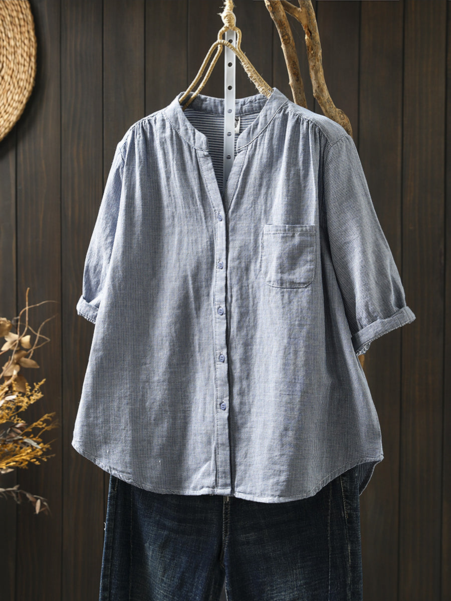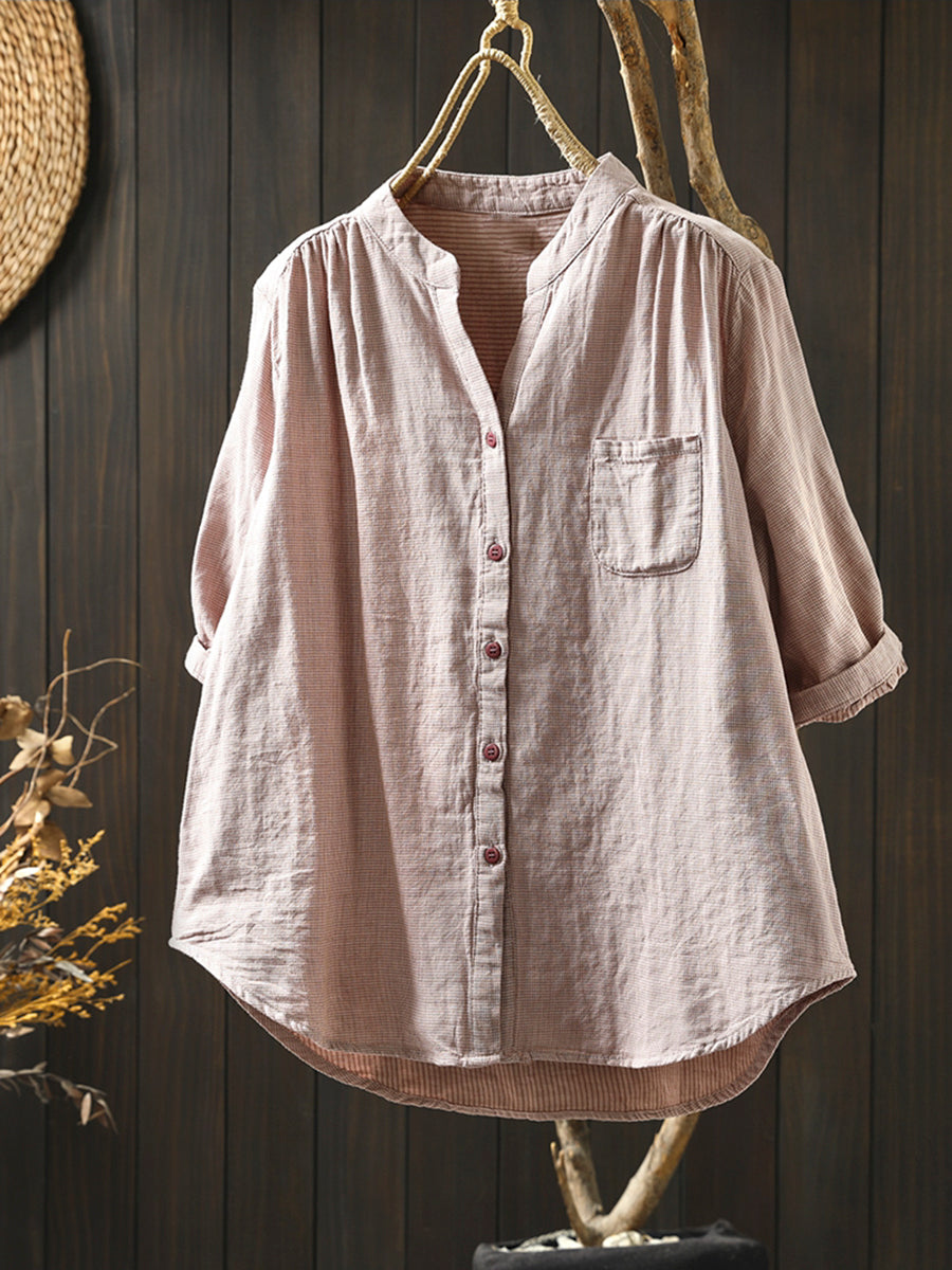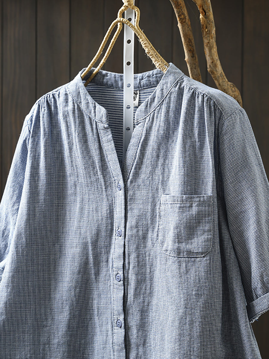 Γυναικείο πουκάμισο Καλοκαιρινό δικτυωτό με V λαιμόκοψη 100% βαμβακερό