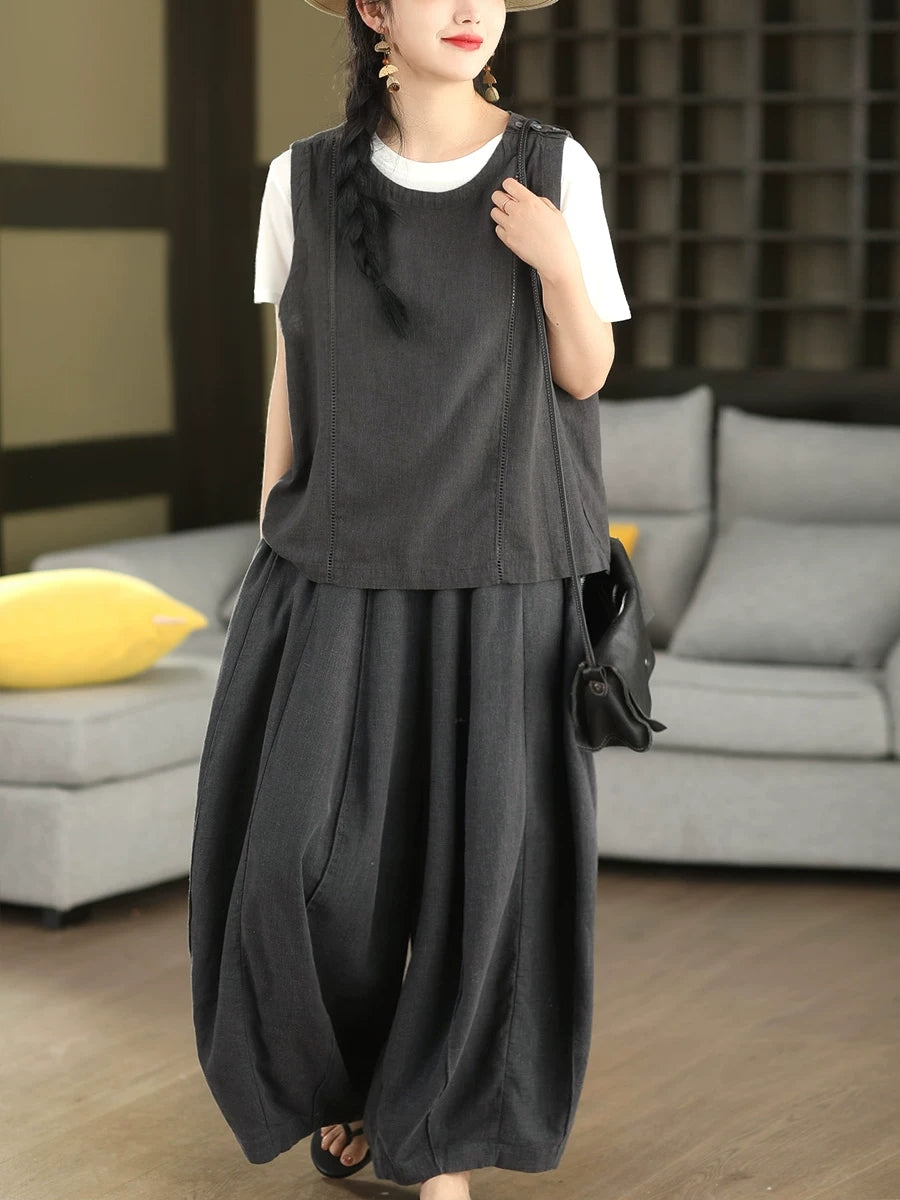 Γυναικείες Summer Retro Pure Color Ramie Blommers